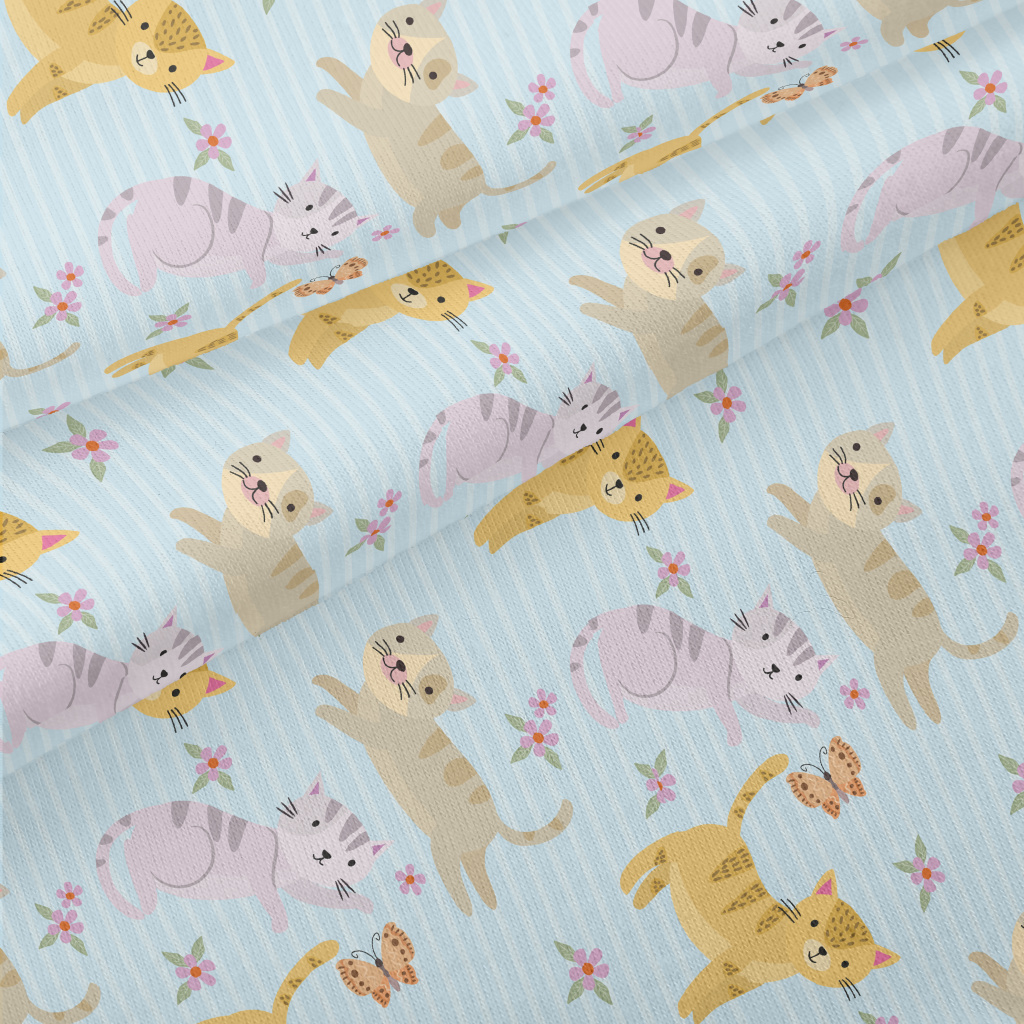 小貓們追逐著蝴蝶仿棉布(幅寬150公分)