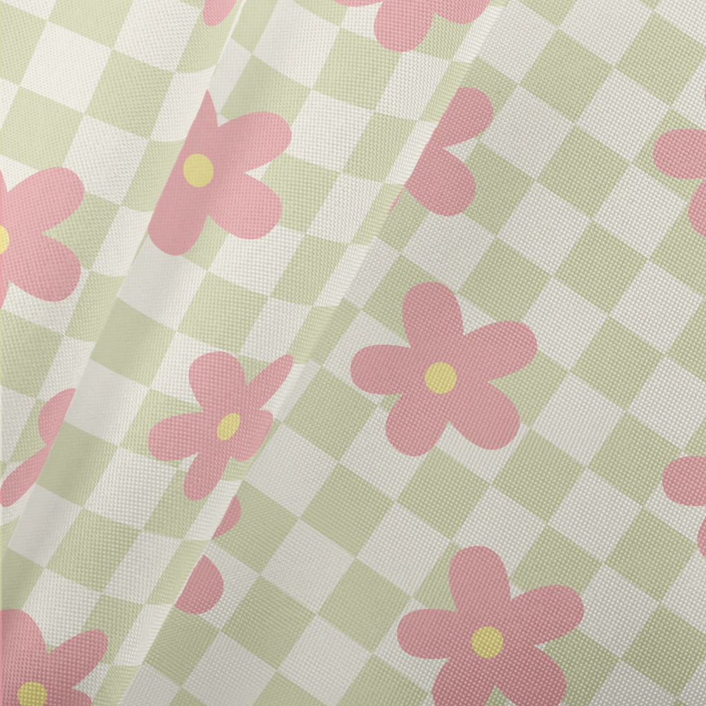 雙色格紋上的小花春亞紡(幅寬160公分)