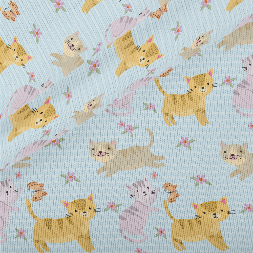 小貓們追逐著蝴蝶仿毛衣布(幅寬150公分)