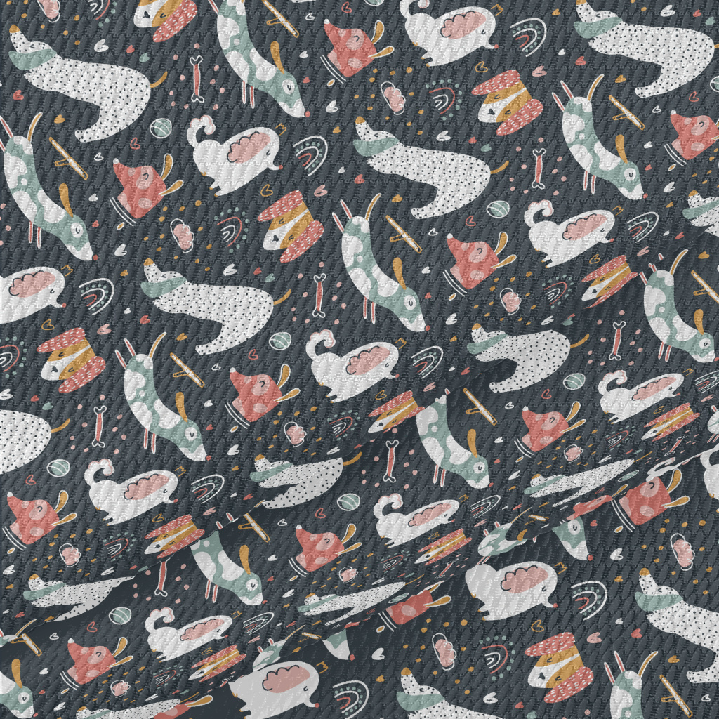 心型和活潑的小狗們泡泡布(幅寬160公分)