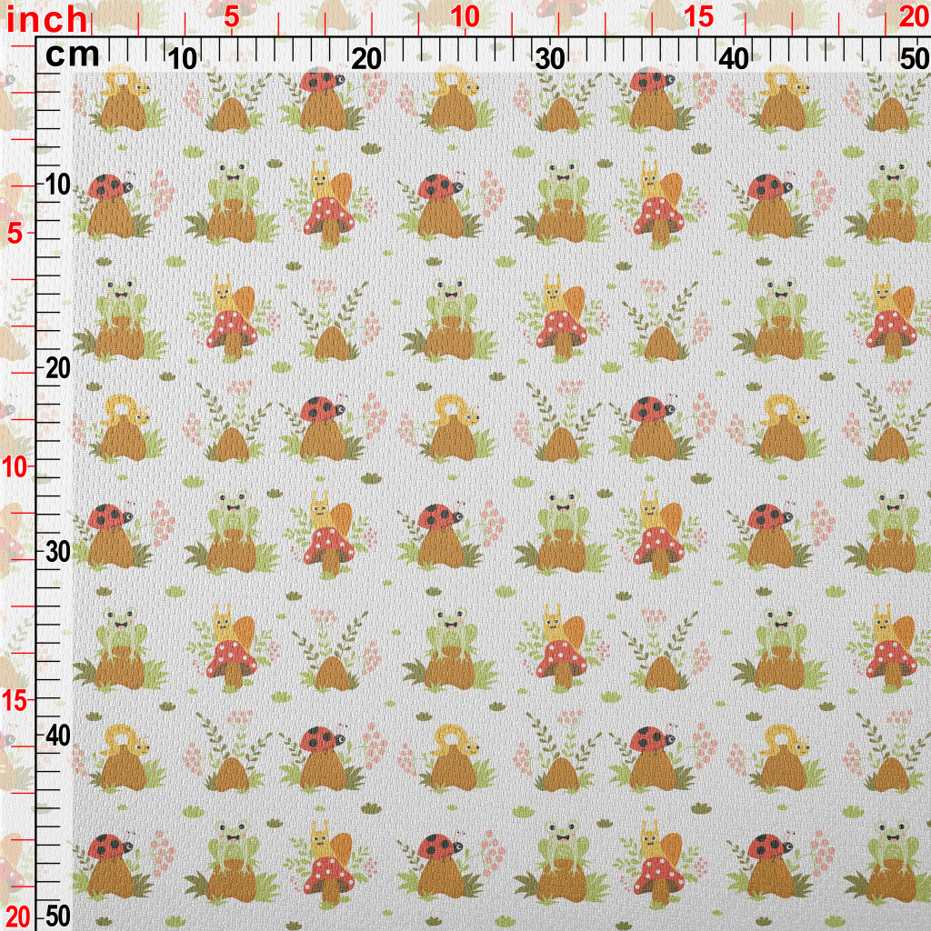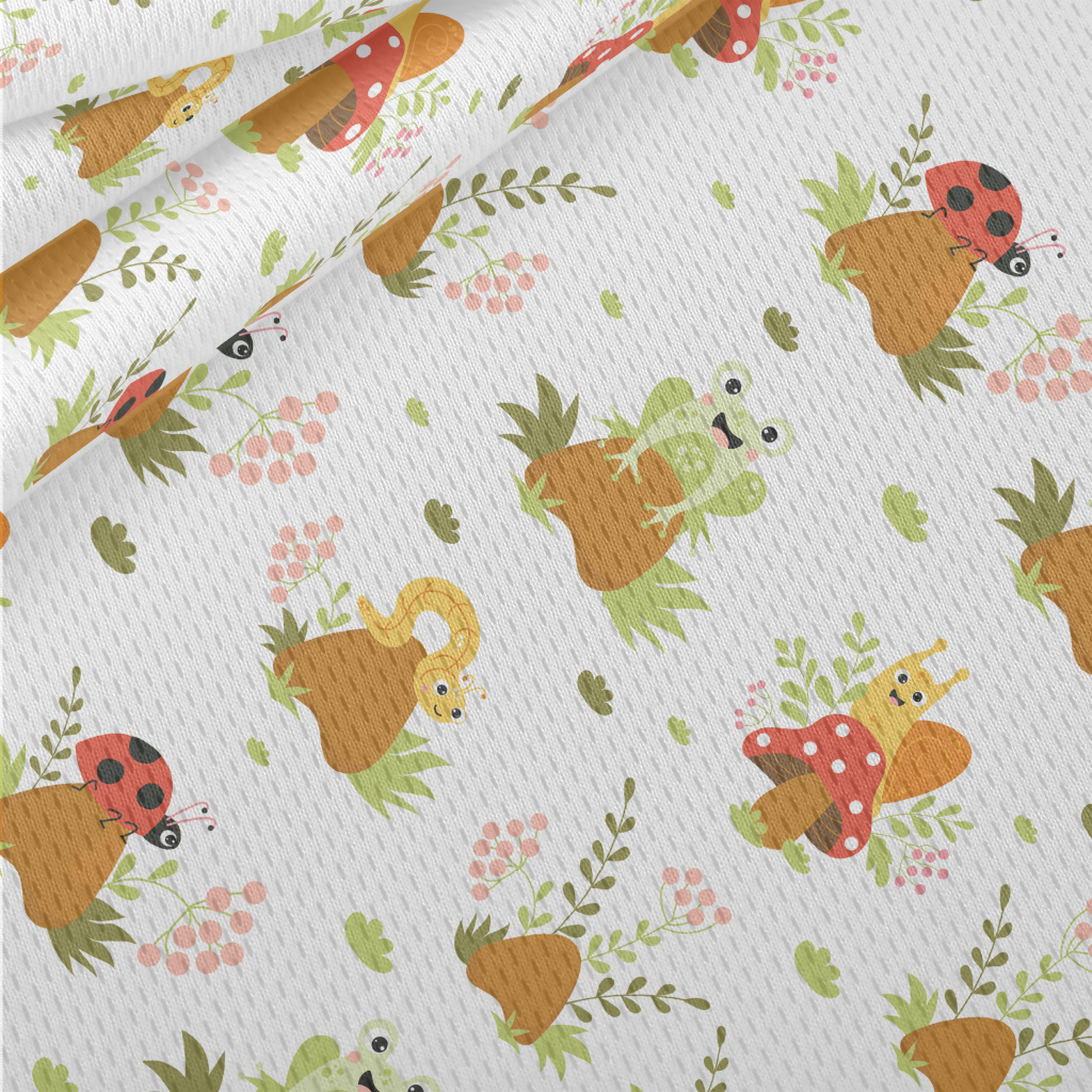 蘑菇上可愛的昆蟲鳥眼布(幅寬160公分)