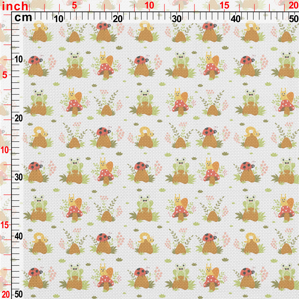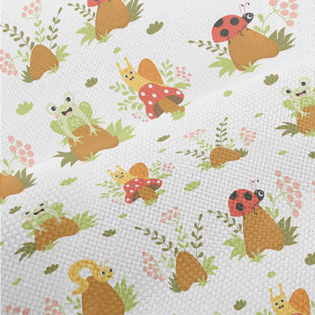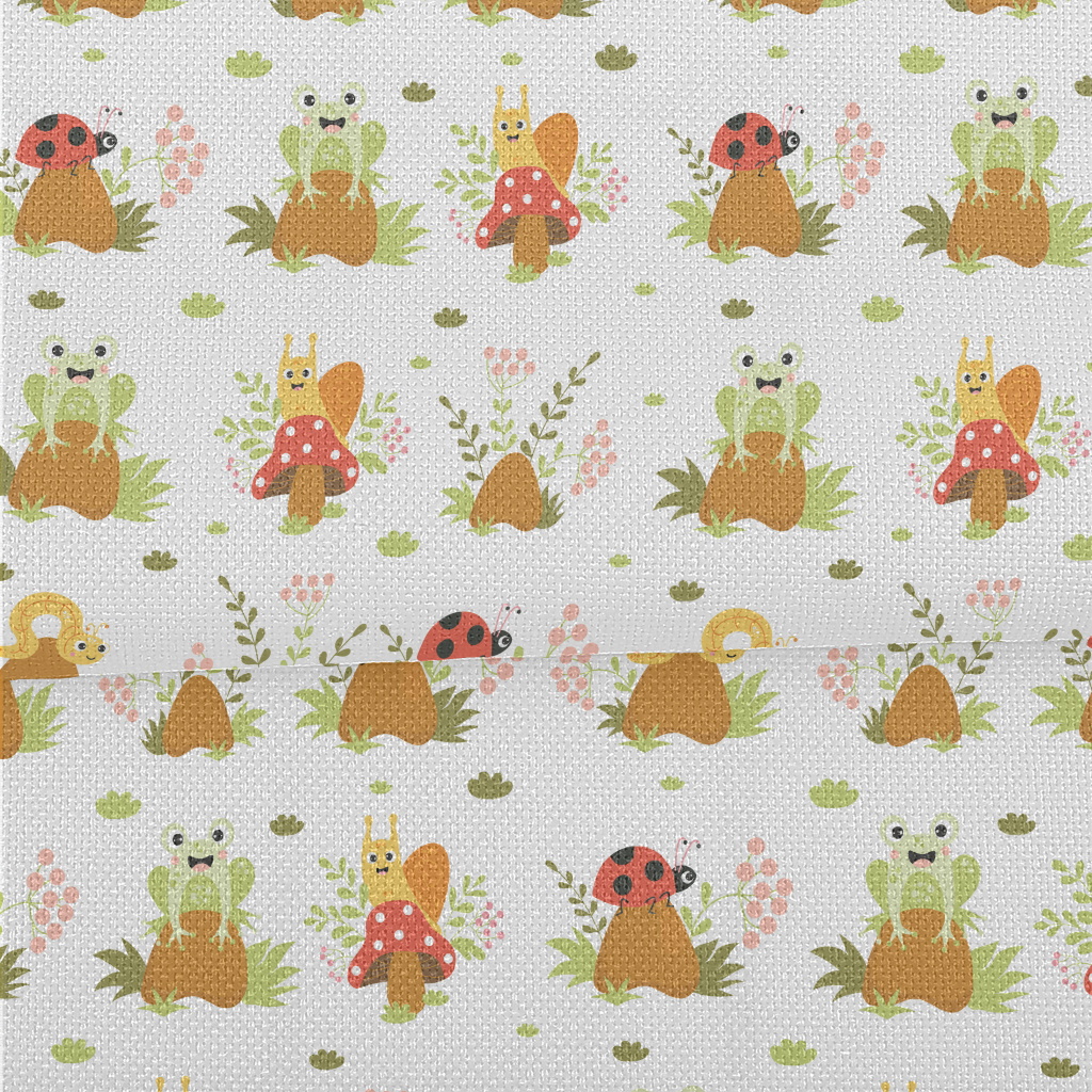 蘑菇上可愛的昆蟲麻布(幅寬150公分)