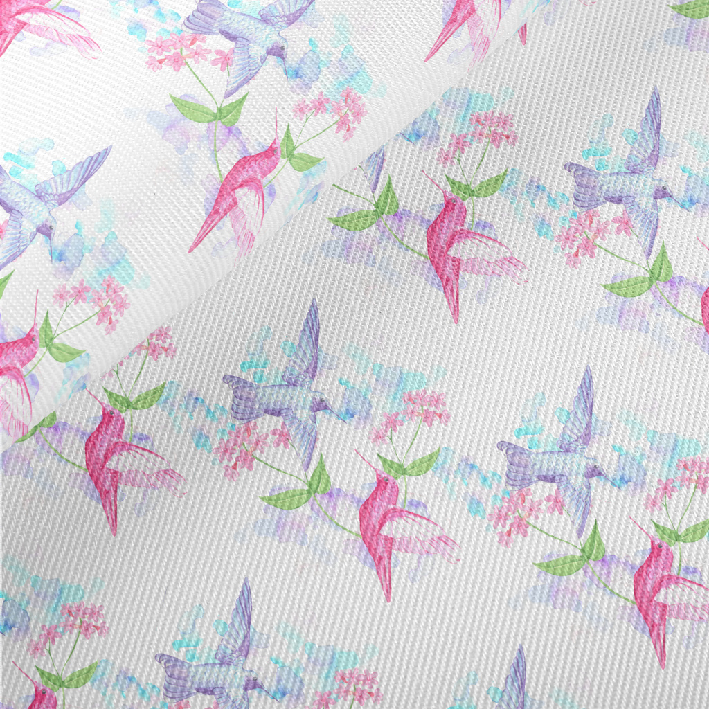 在鮮花上採蜜的蜂鳥斜紋布(幅寬150公分)