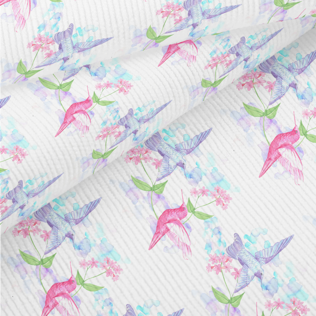 在鮮花上採蜜的蜂鳥燈芯絨(幅寬150公分)