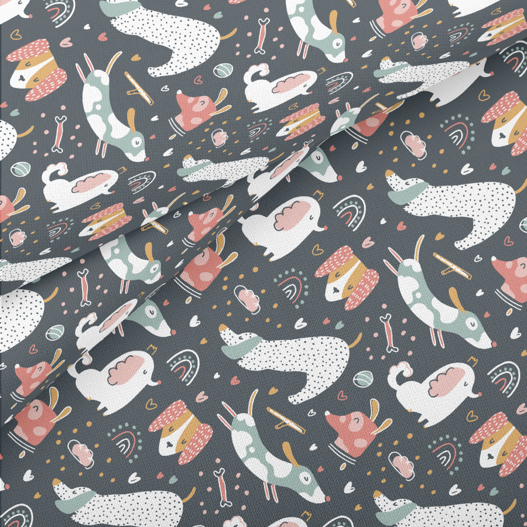 心型和活潑的小狗們羅馬布(幅寬160公分)