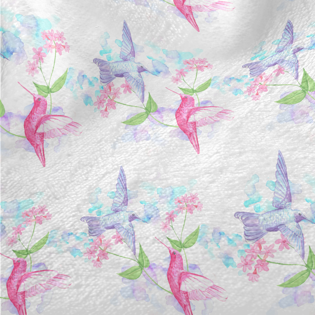 在鮮花上採蜜的蜂鳥法蘭絨(幅寬150公分)