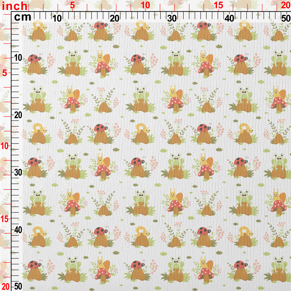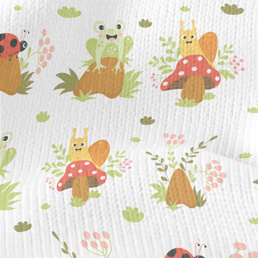 蘑菇上可愛的昆蟲仿毛衣布(幅寬150公分)