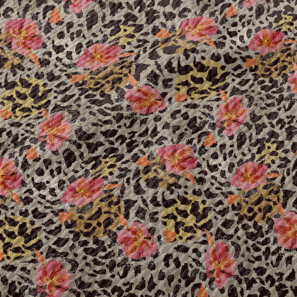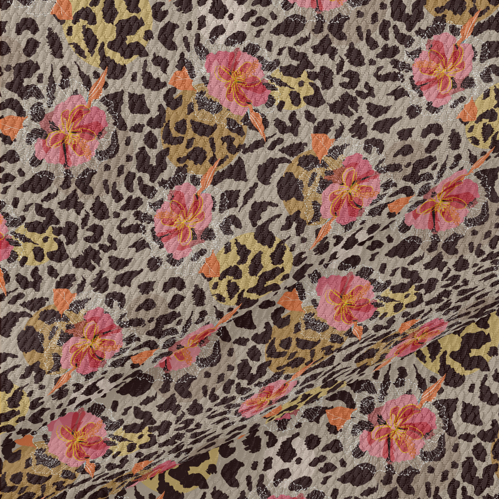 艷麗的花配上動物紋泡泡布(幅寬160公分)