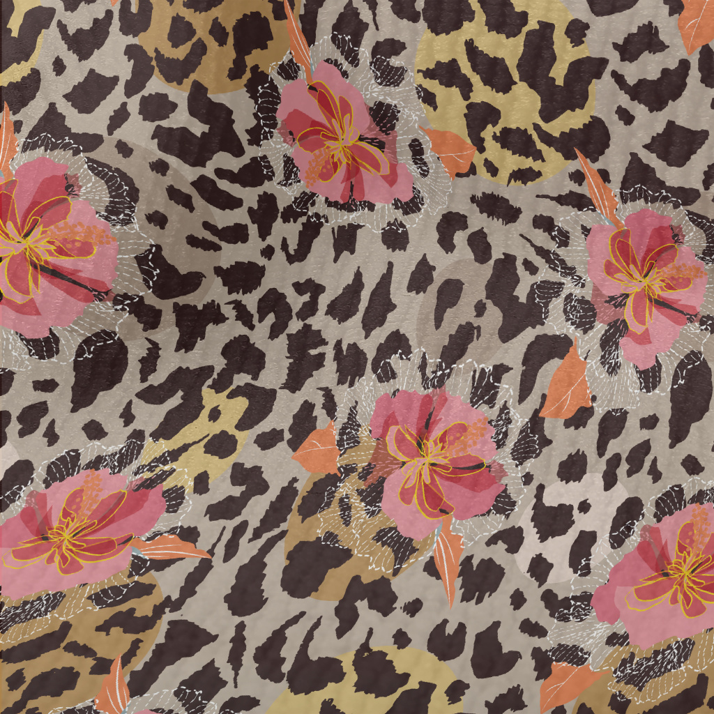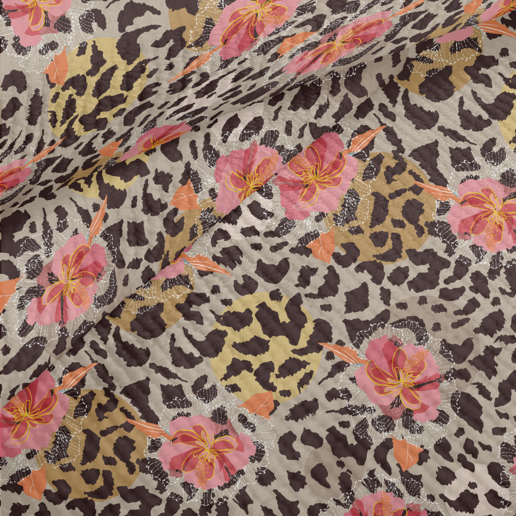 艷麗的花配上動物紋毛巾布(幅寬160公分)