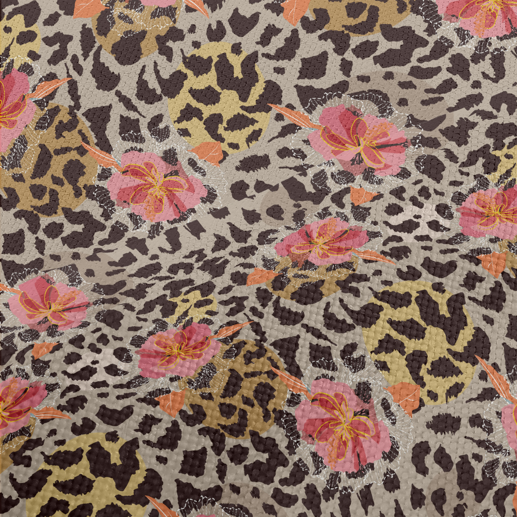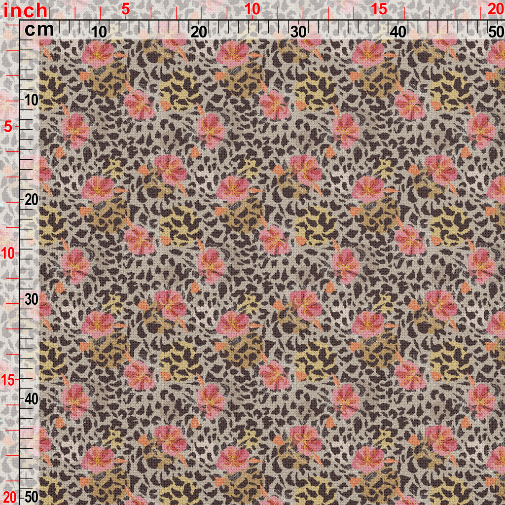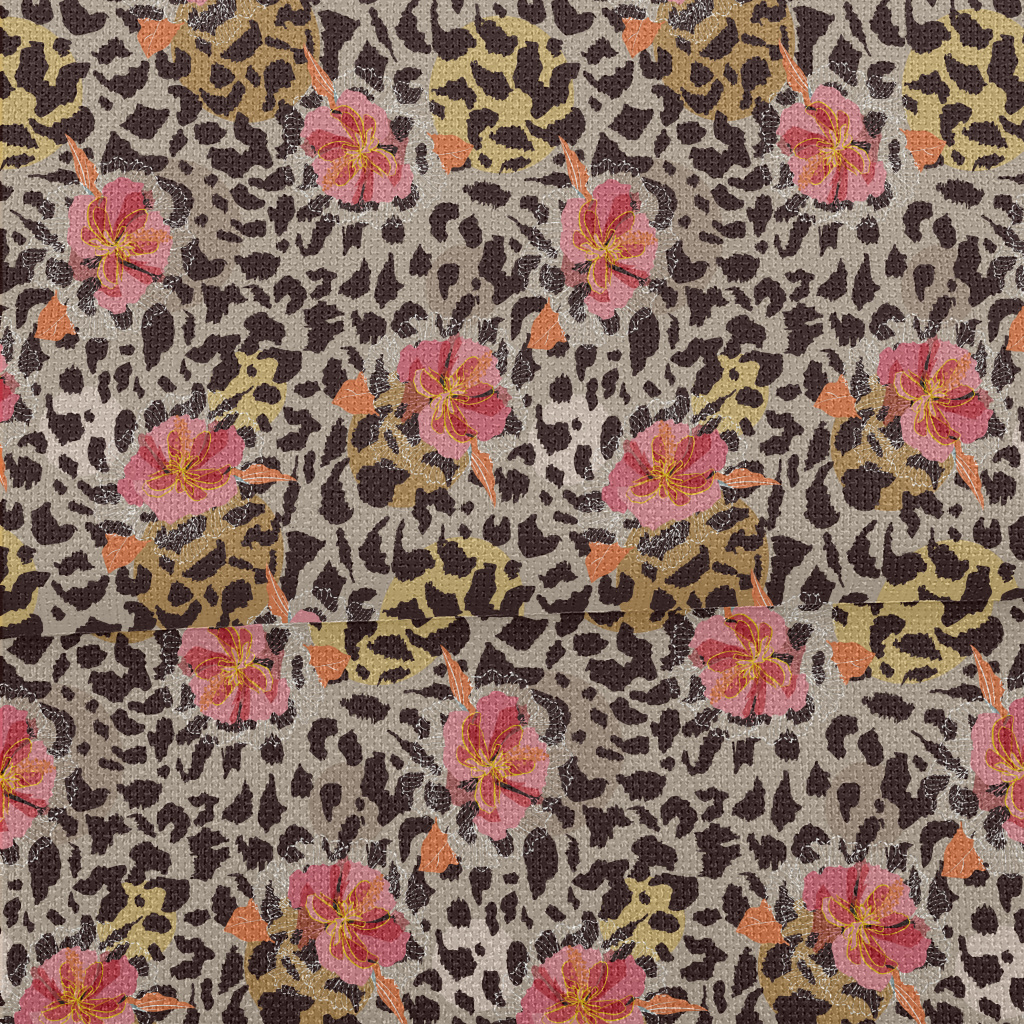 艷麗的花配上動物紋麻布(幅寬150公分)