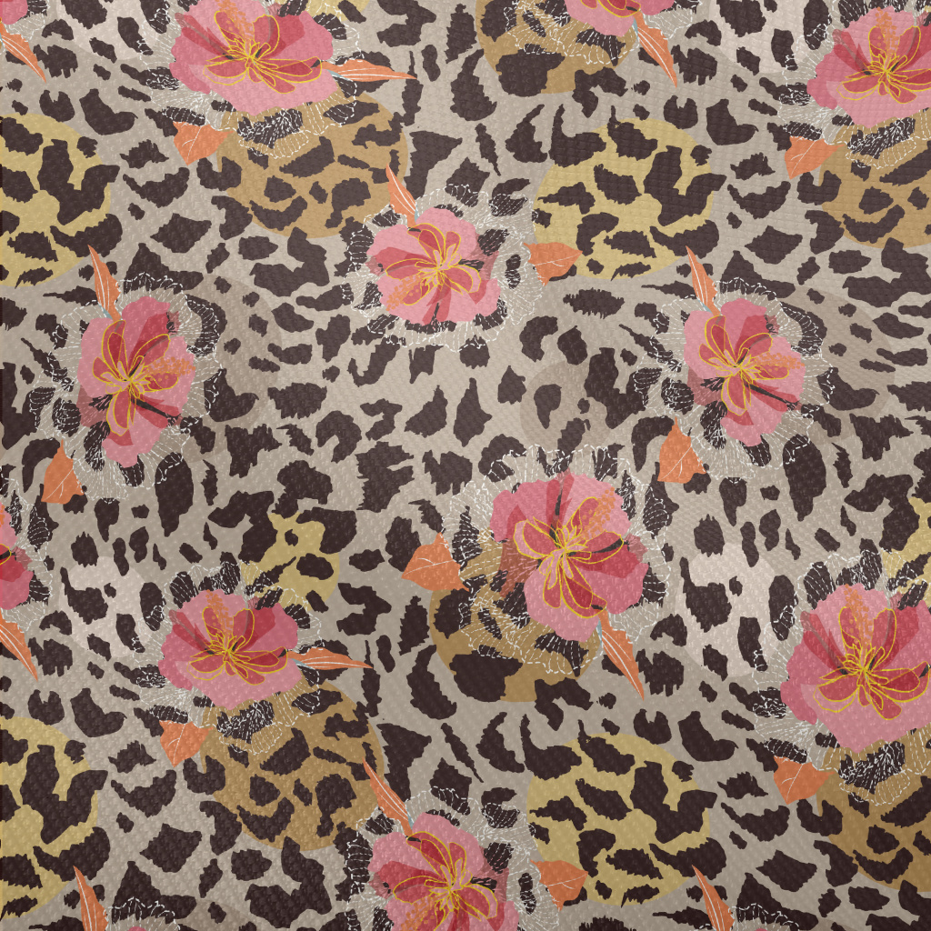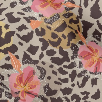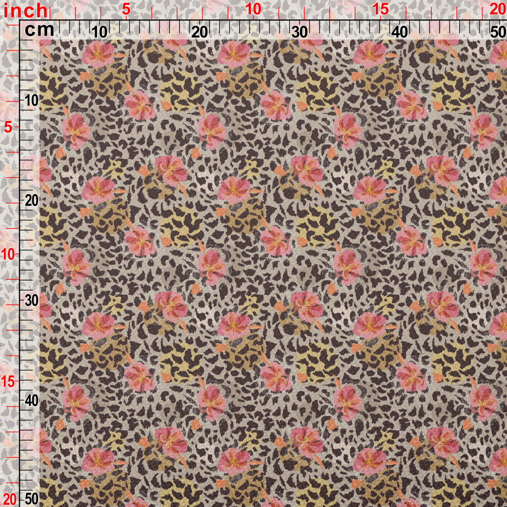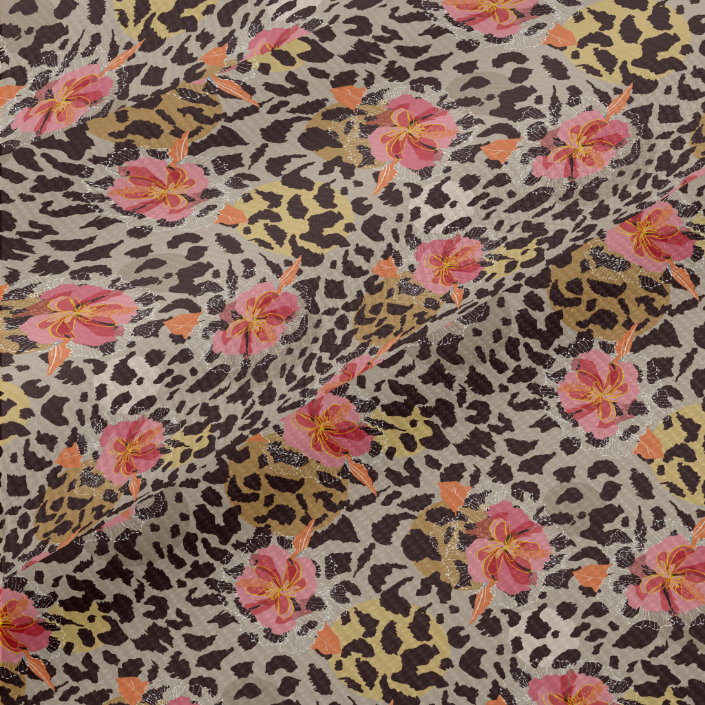 艷麗的花配上動物紋雙斜布(幅寬150公分)