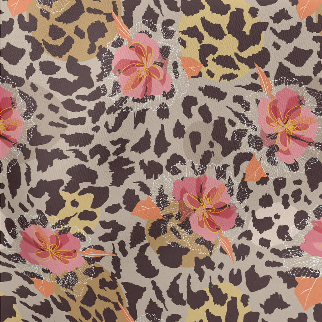 艷麗的花配上動物紋羅馬布(幅寬160公分)