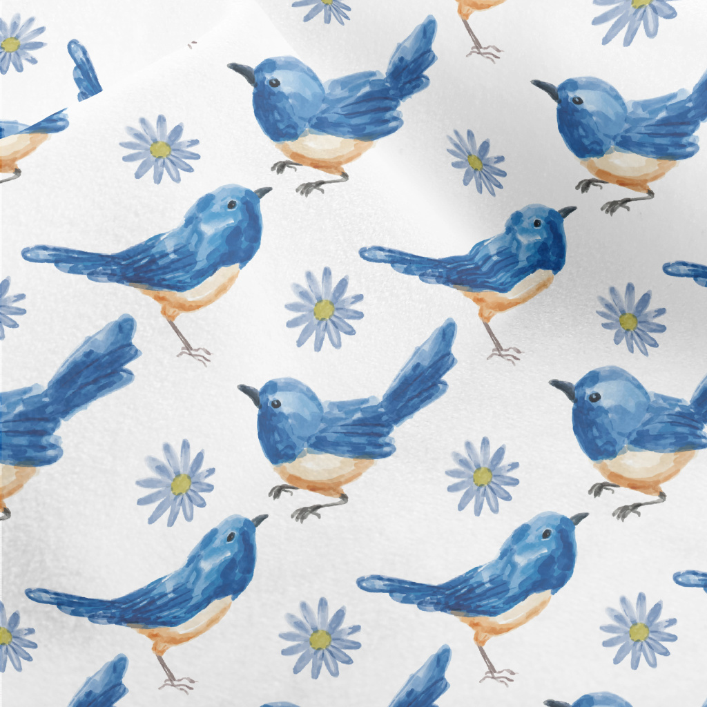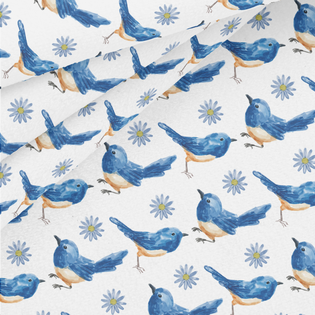 藍鳥陪伴著藍花水晶絨(幅寬160公分)