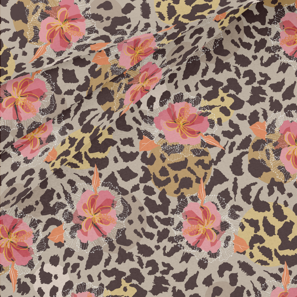 艷麗的花配上動物紋水晶絨(幅寬160公分)