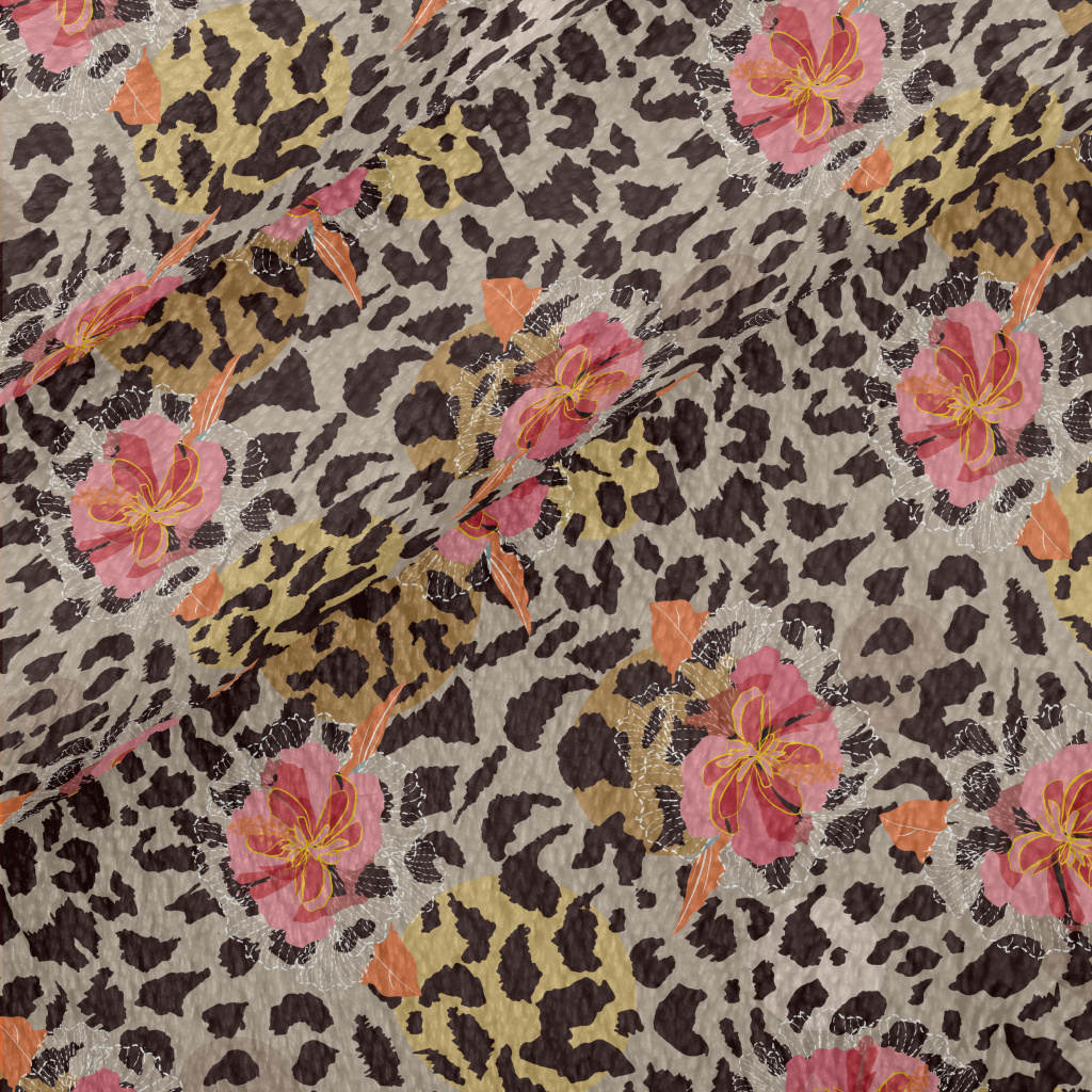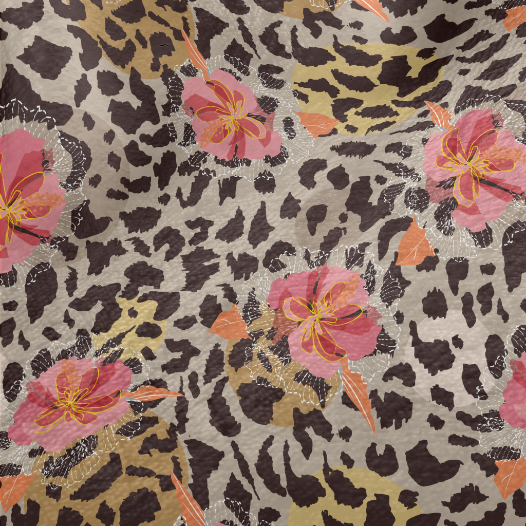 艷麗的花配上動物紋法蘭絨(幅寬150公分)