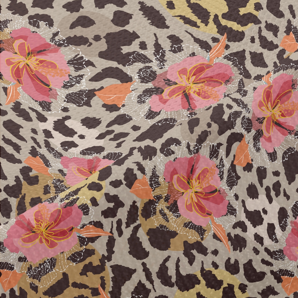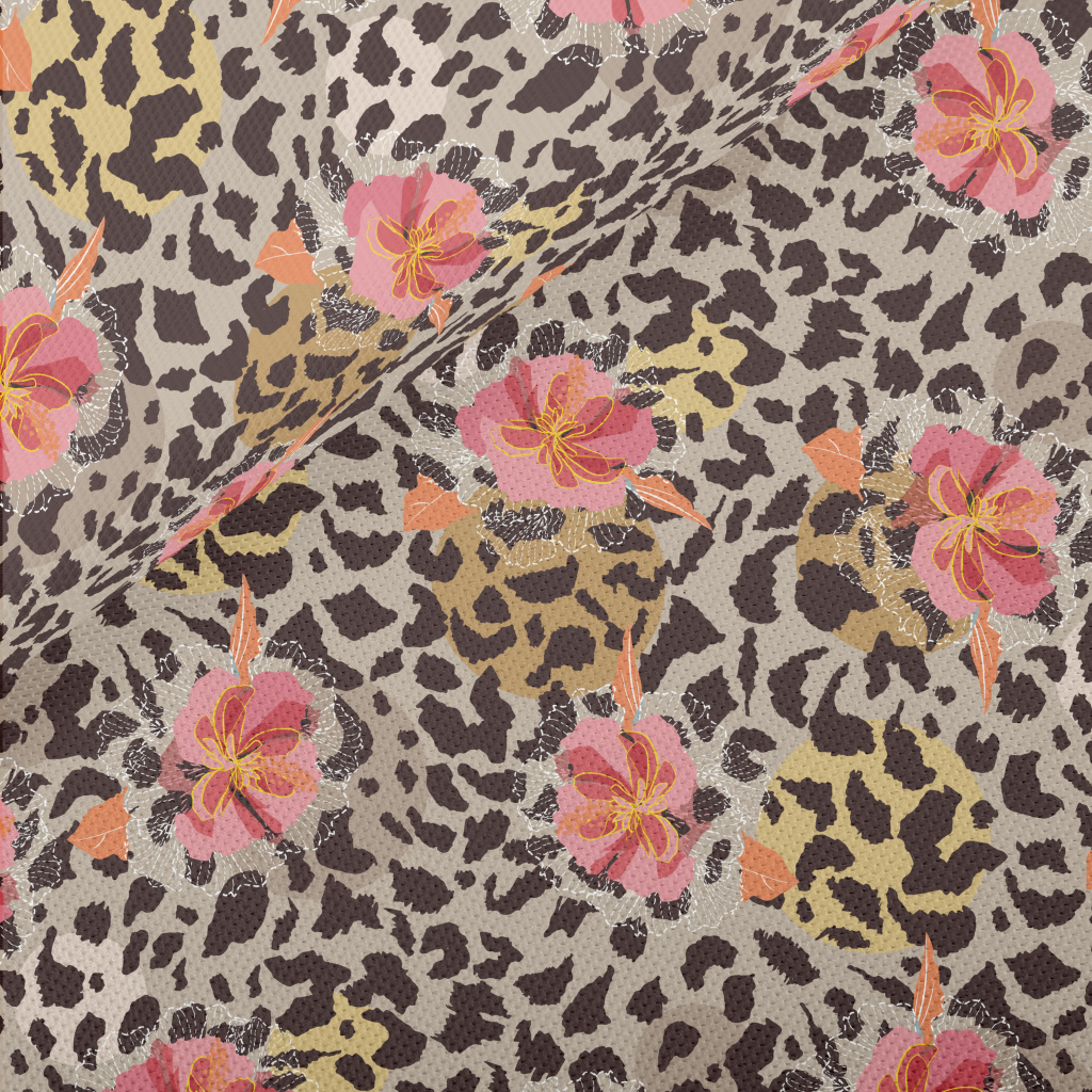 艷麗的花配上動物紋高爾布(幅寬180公分)