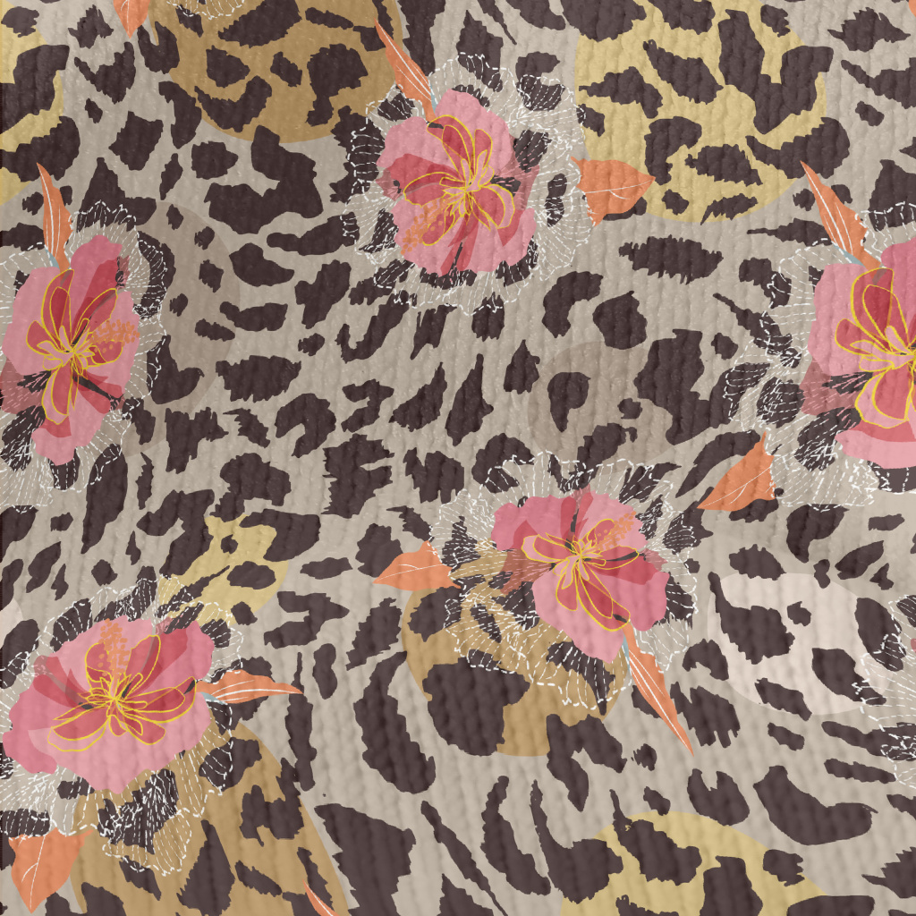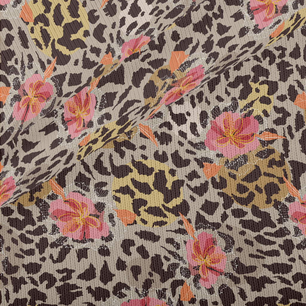 艷麗的花配上動物紋仿毛衣布(幅寬150公分)
