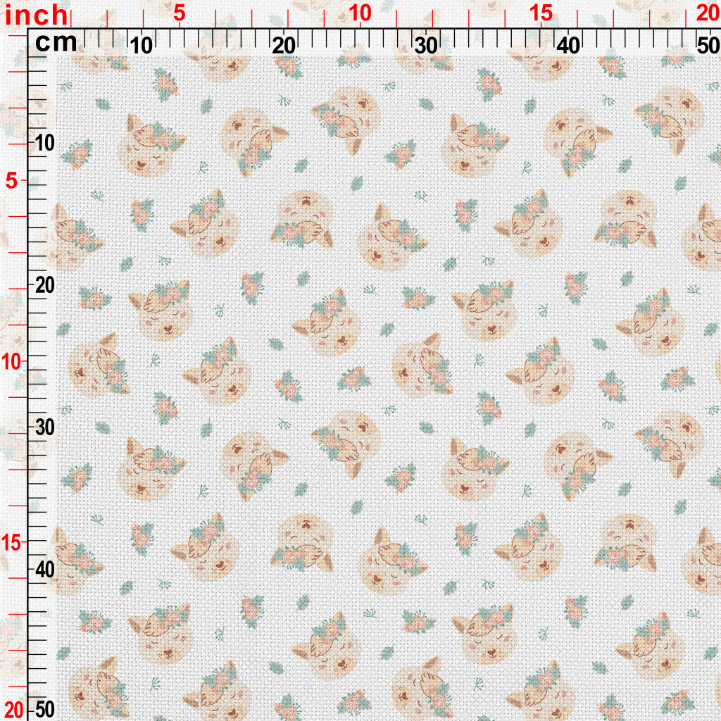 戴著花圈頭飾的動物麻布(幅寬150公分)