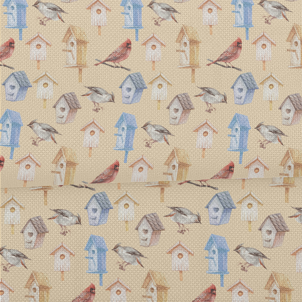 小鳥帶著食物回窩麻布(幅寬150公分)