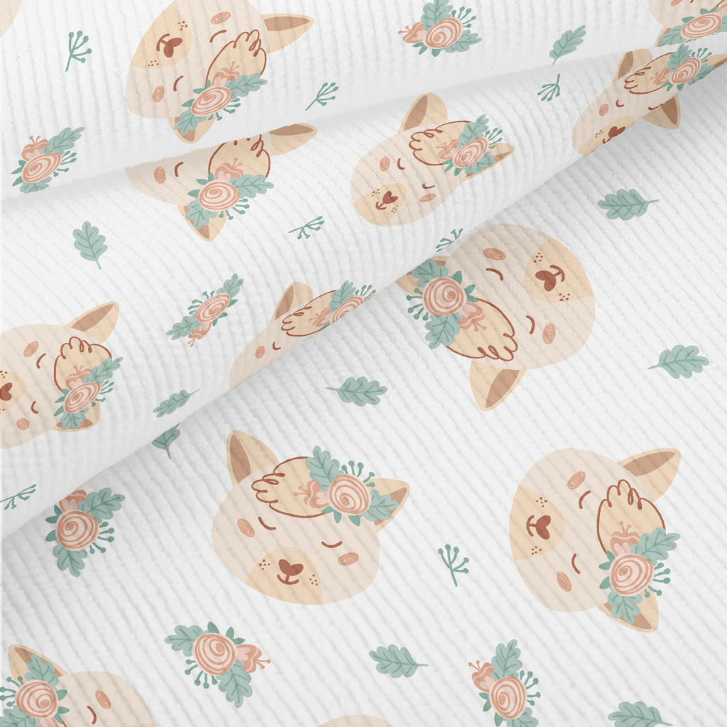 戴著花圈頭飾的動物燈芯絨(幅寬150公分)