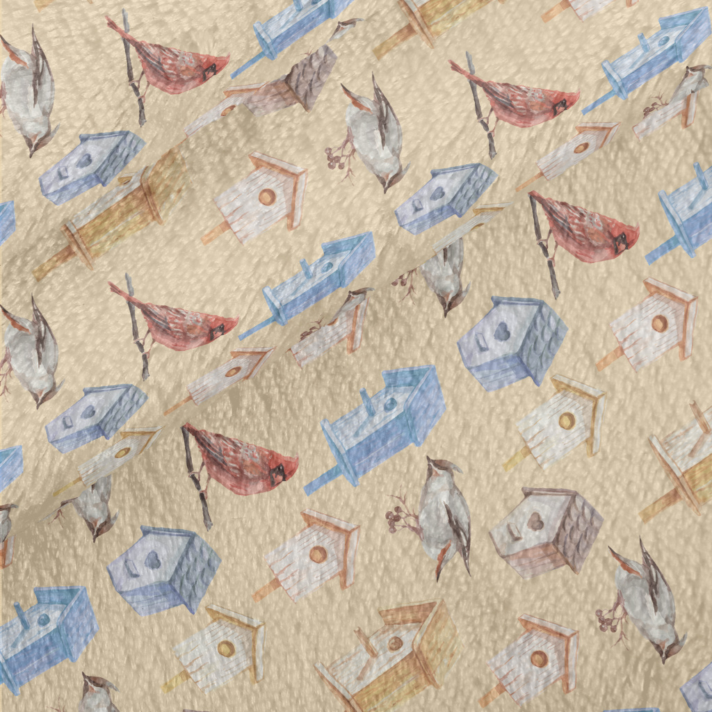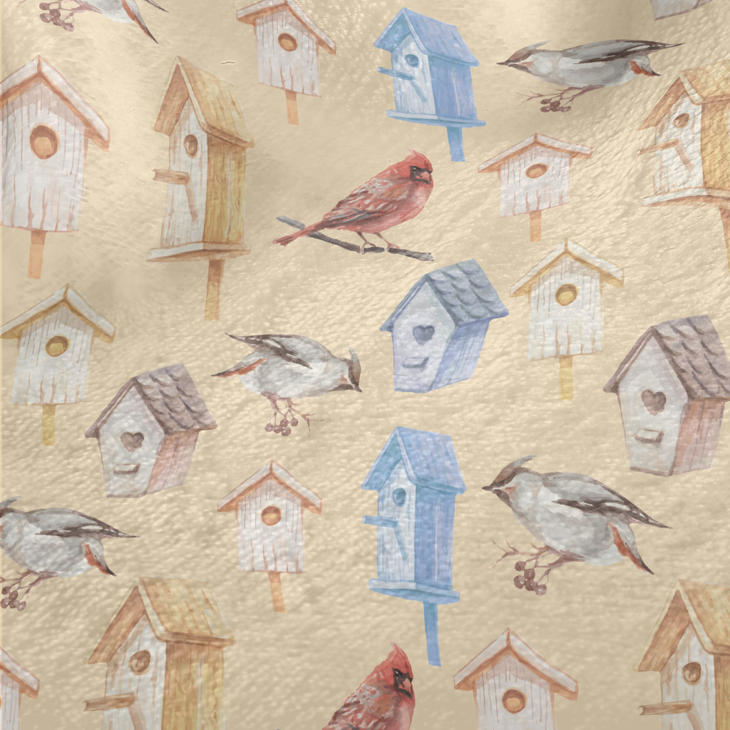小鳥帶著食物回窩法蘭絨(幅寬150公分)
