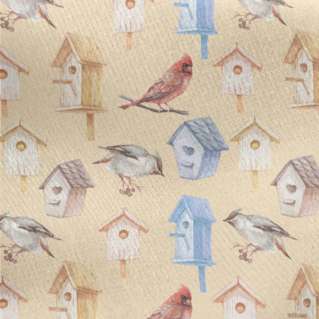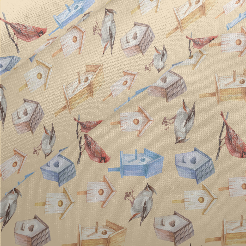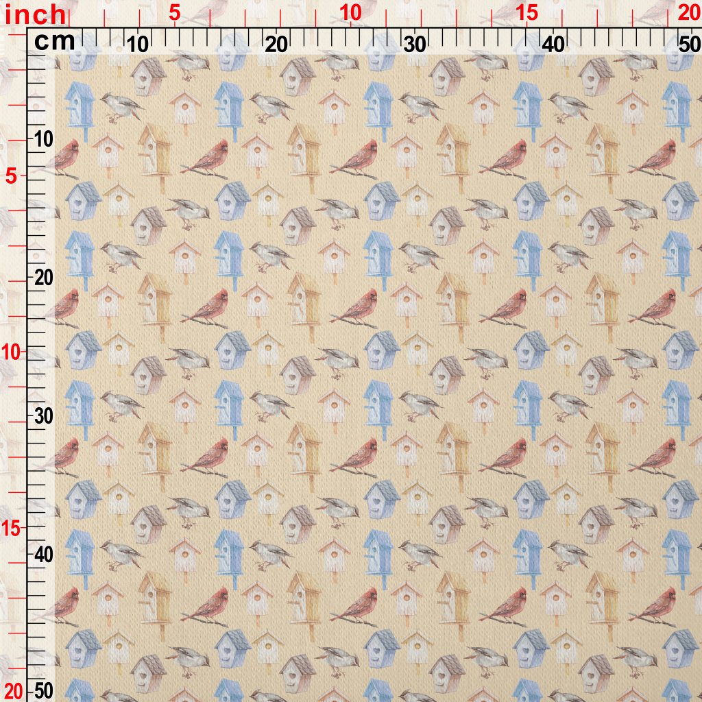 小鳥帶著食物回窩刷毛布(幅寬150公分)