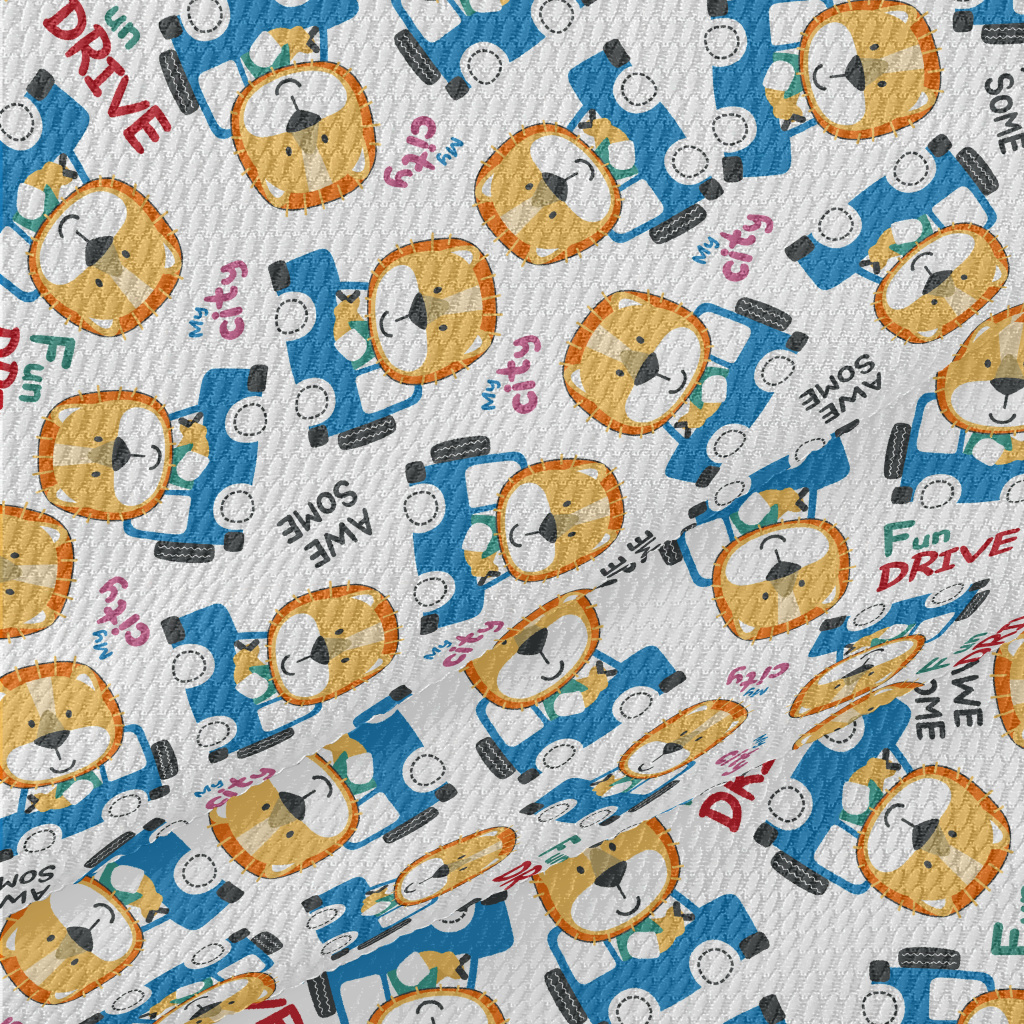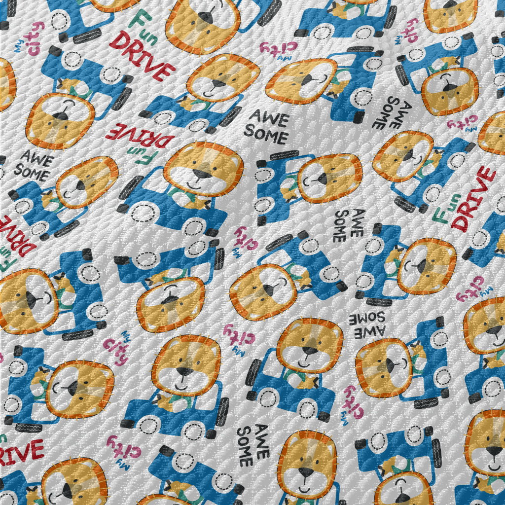 駕駛汽車的微笑動物泡泡布(幅寬160公分)