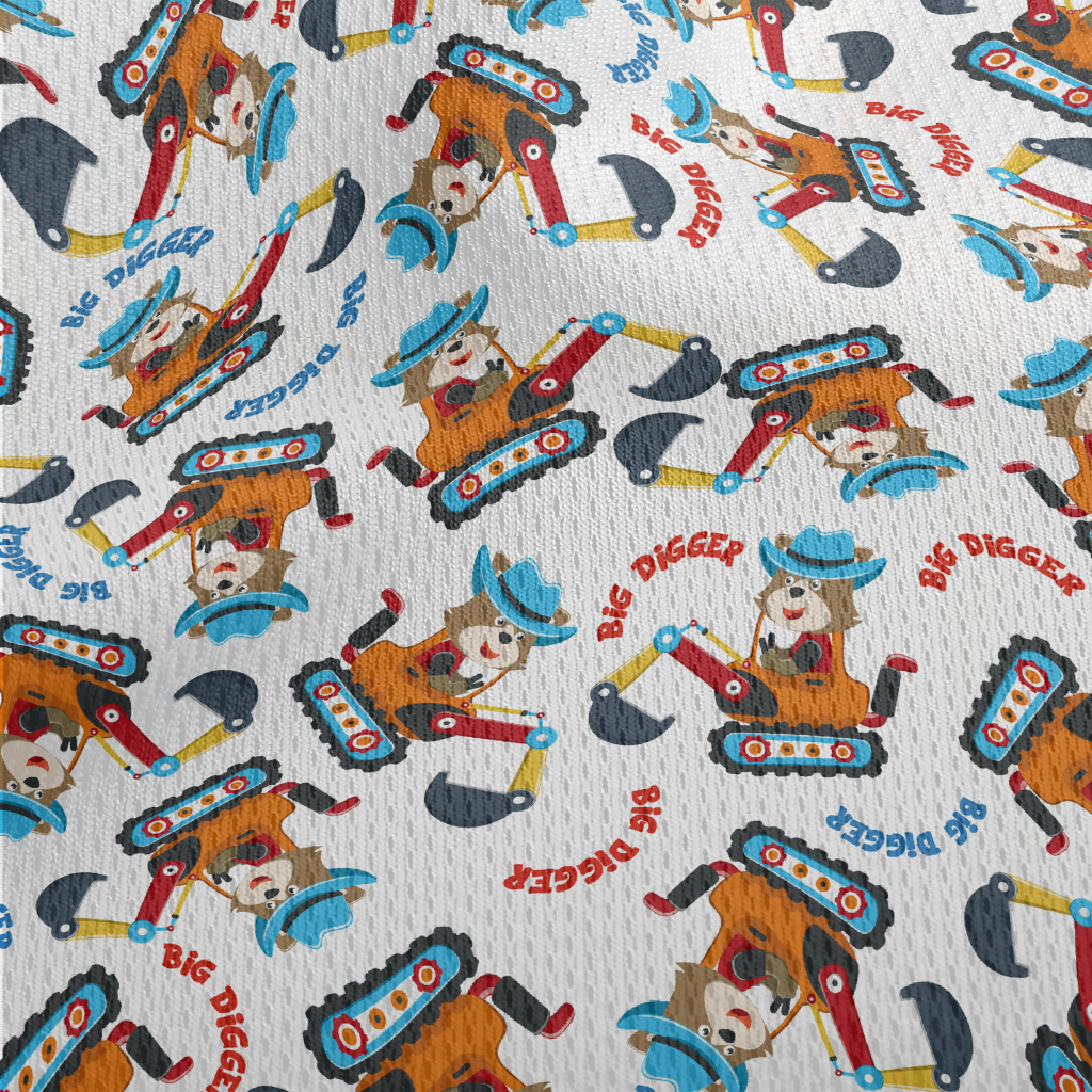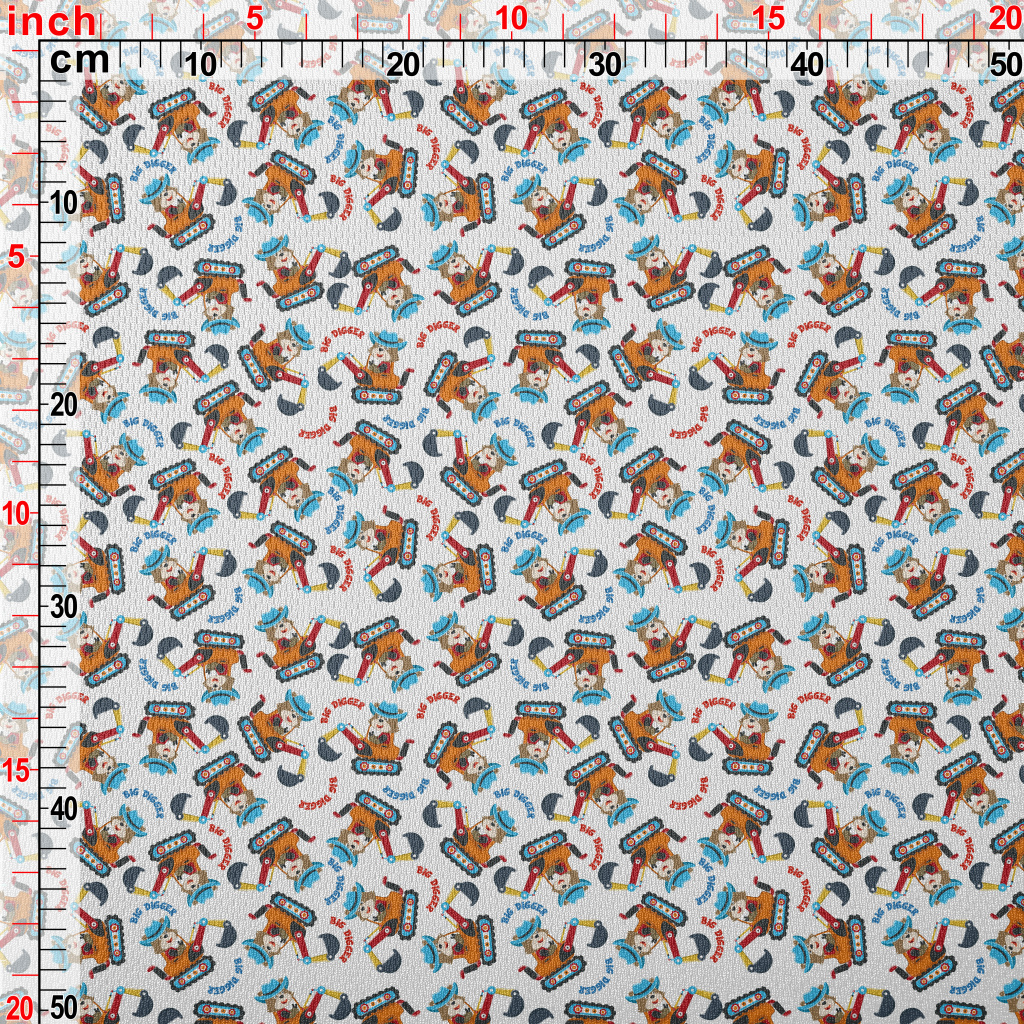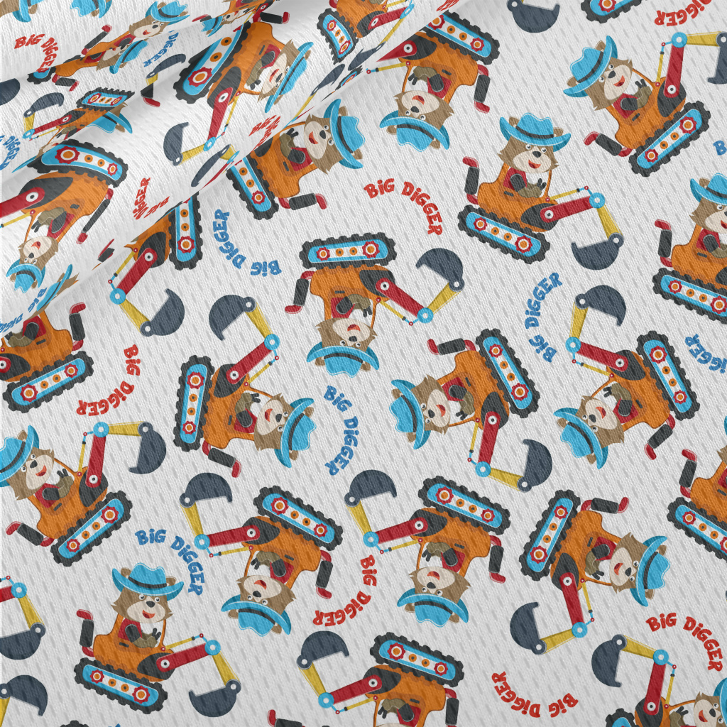 開挖土機的小動物鳥眼布(幅寬160公分)