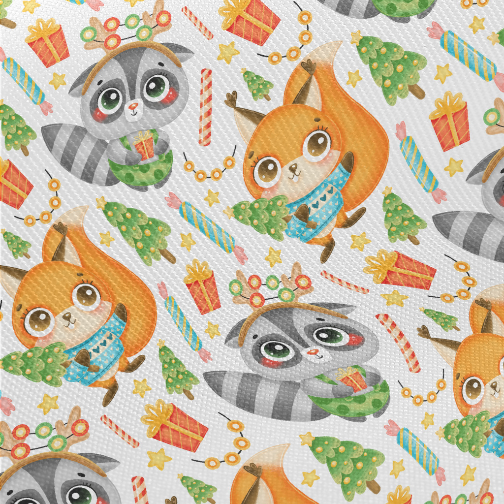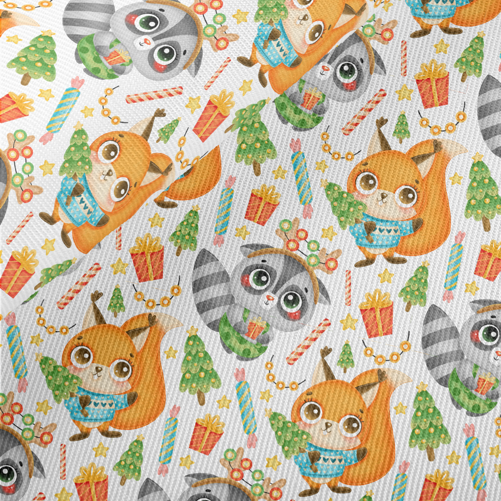 慶祝聖誕浣熊和松鼠斜紋布(幅寬150公分)
