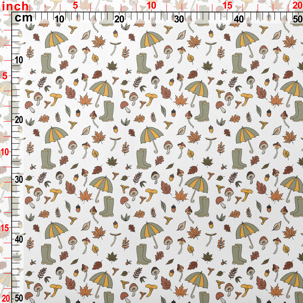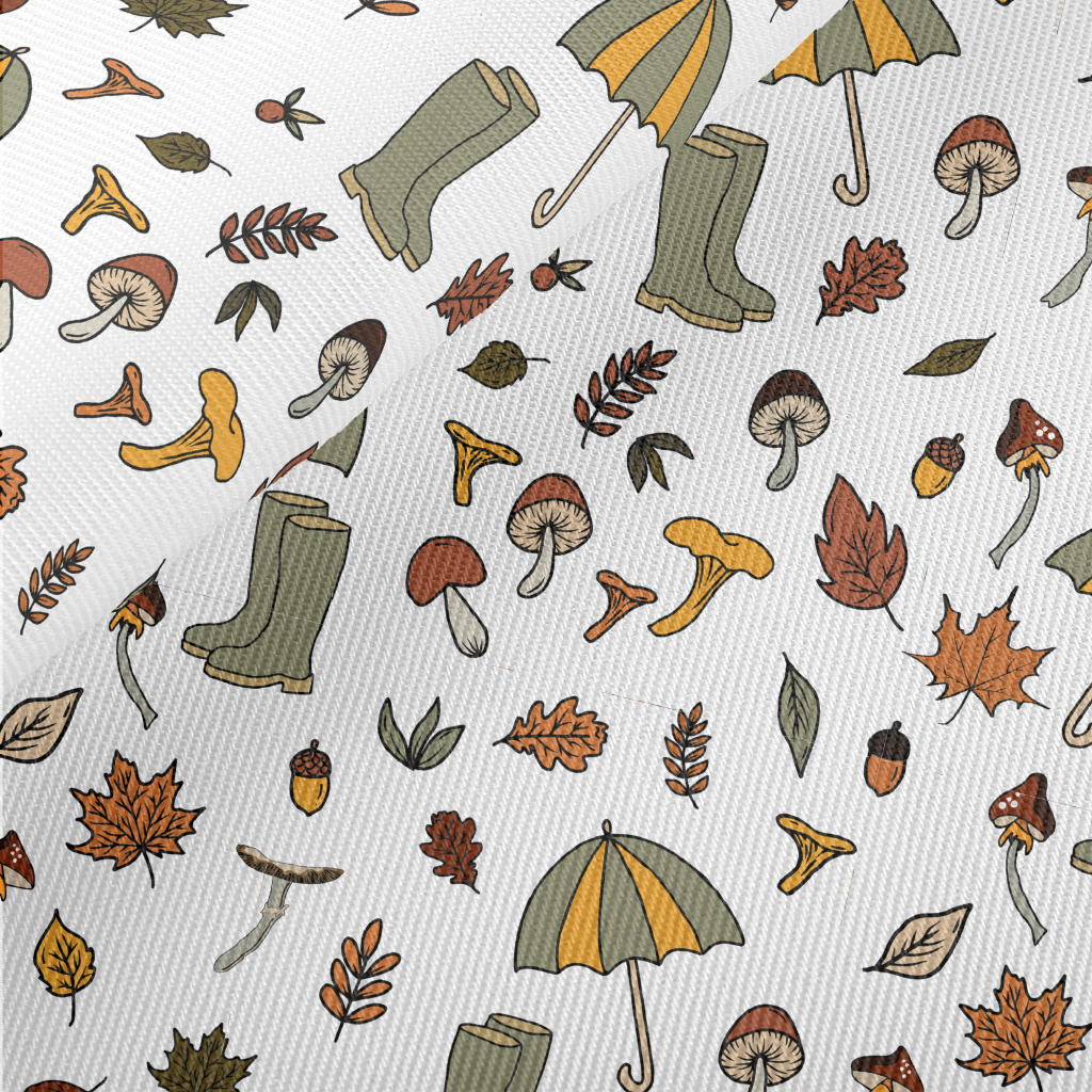 秋季森林中採摘蘑菇斜紋布(幅寬150公分)