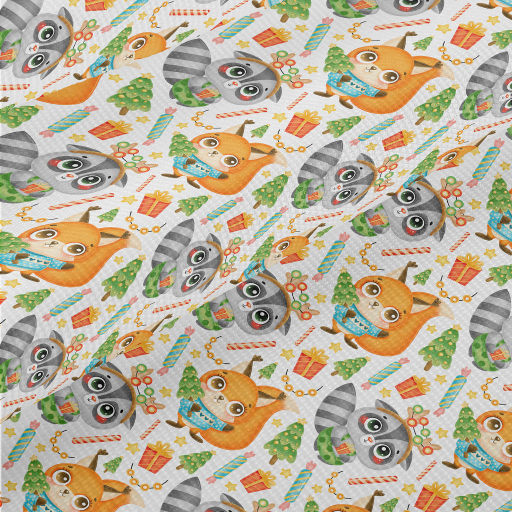慶祝聖誕浣熊和松鼠雙斜布(幅寬150公分)