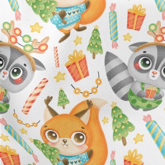 慶祝聖誕浣熊和松鼠羅馬布(幅寬160公分)