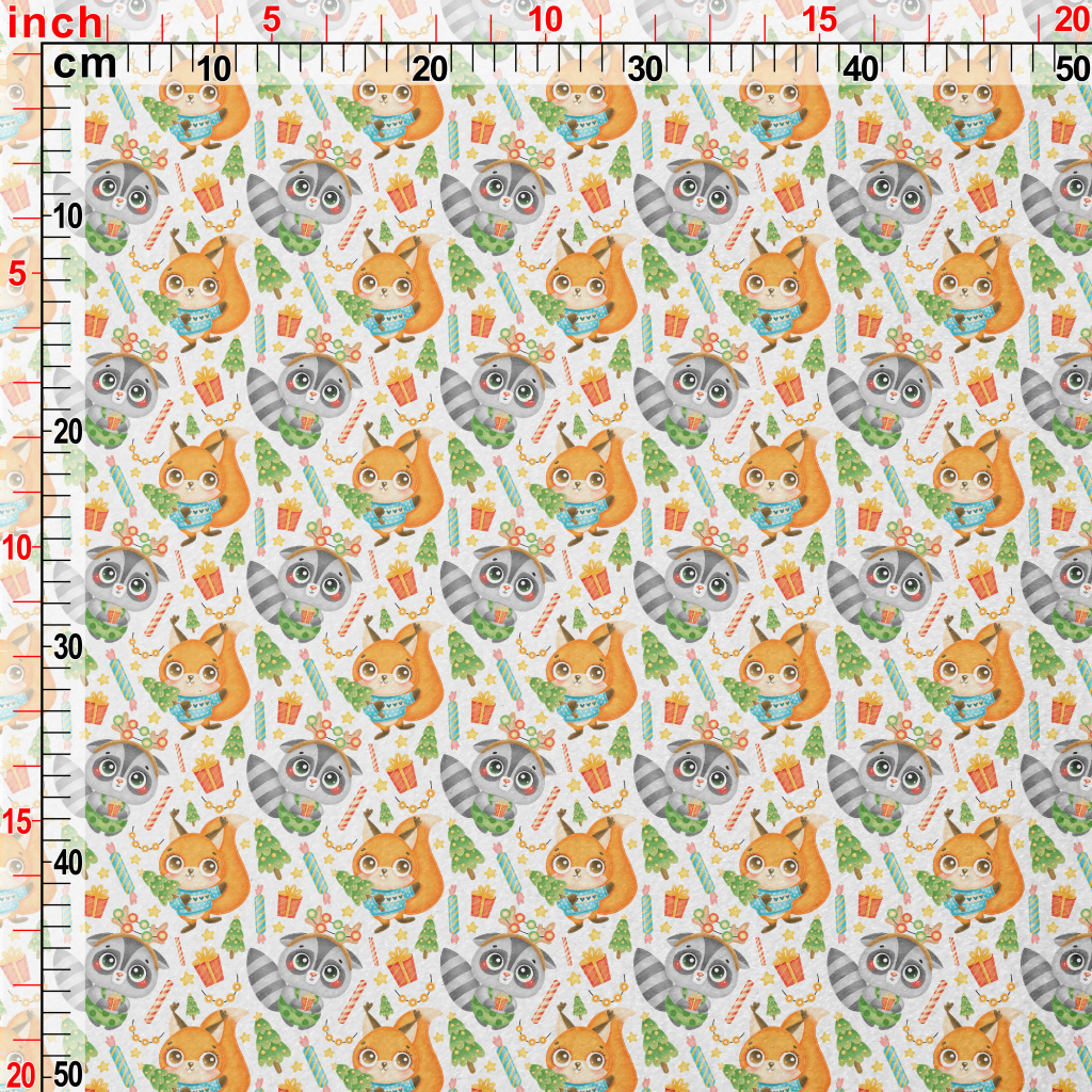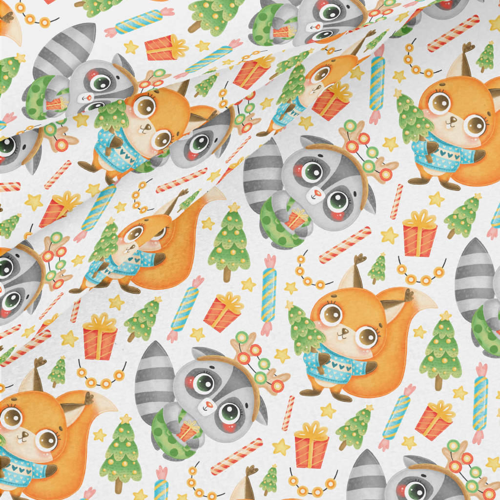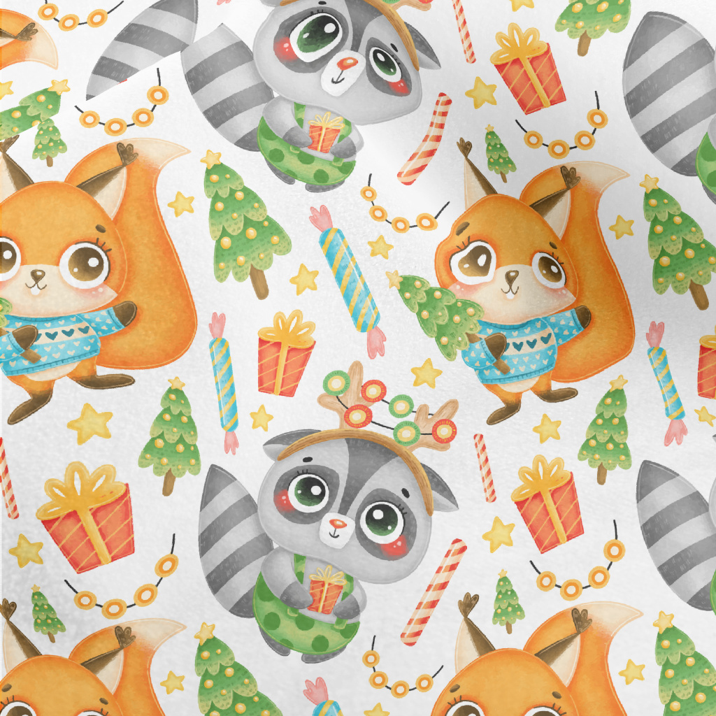 慶祝聖誕浣熊和松鼠水晶絨(幅寬160公分)