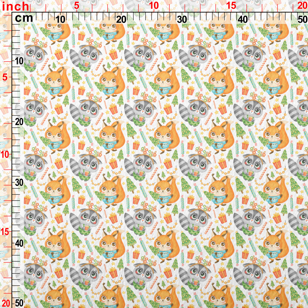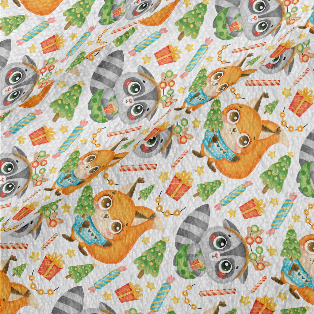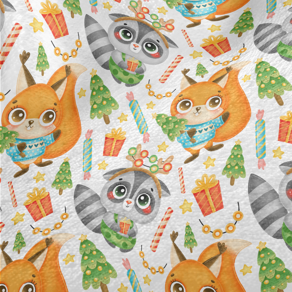 慶祝聖誕浣熊和松鼠法蘭絨(幅寬150公分)