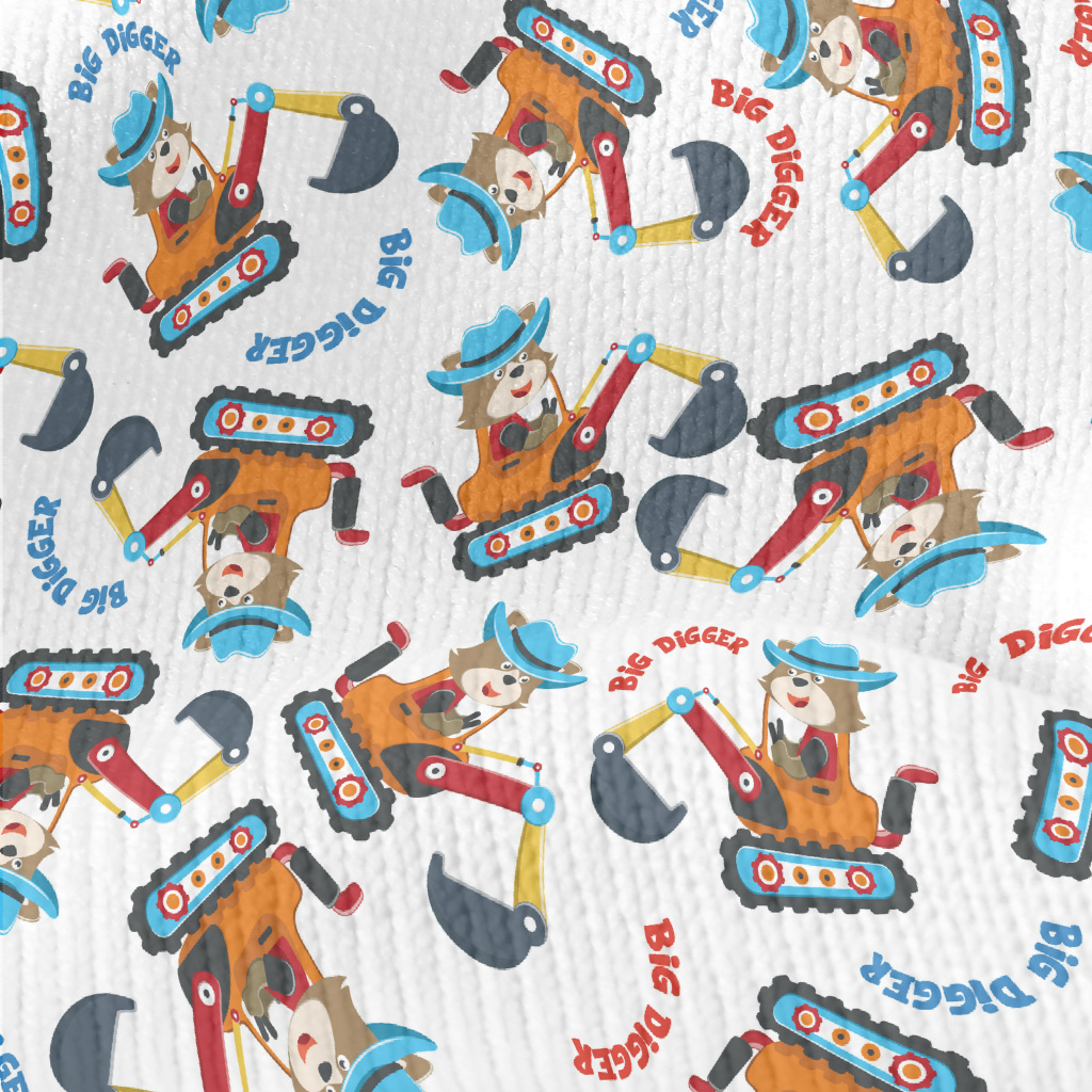 開挖土機的小動物仿毛衣布(幅寬150公分)
