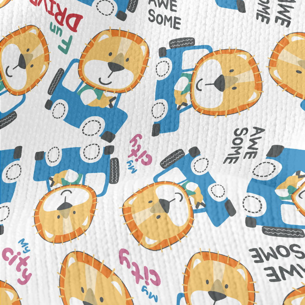 駕駛汽車的微笑動物仿毛衣布(幅寬150公分)