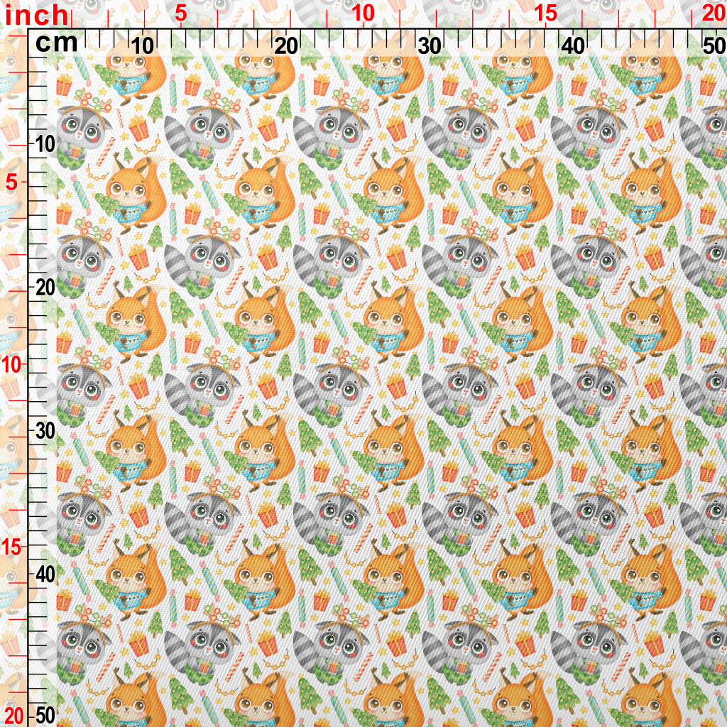 慶祝聖誕浣熊和松鼠厚棉布(幅寬150公分)