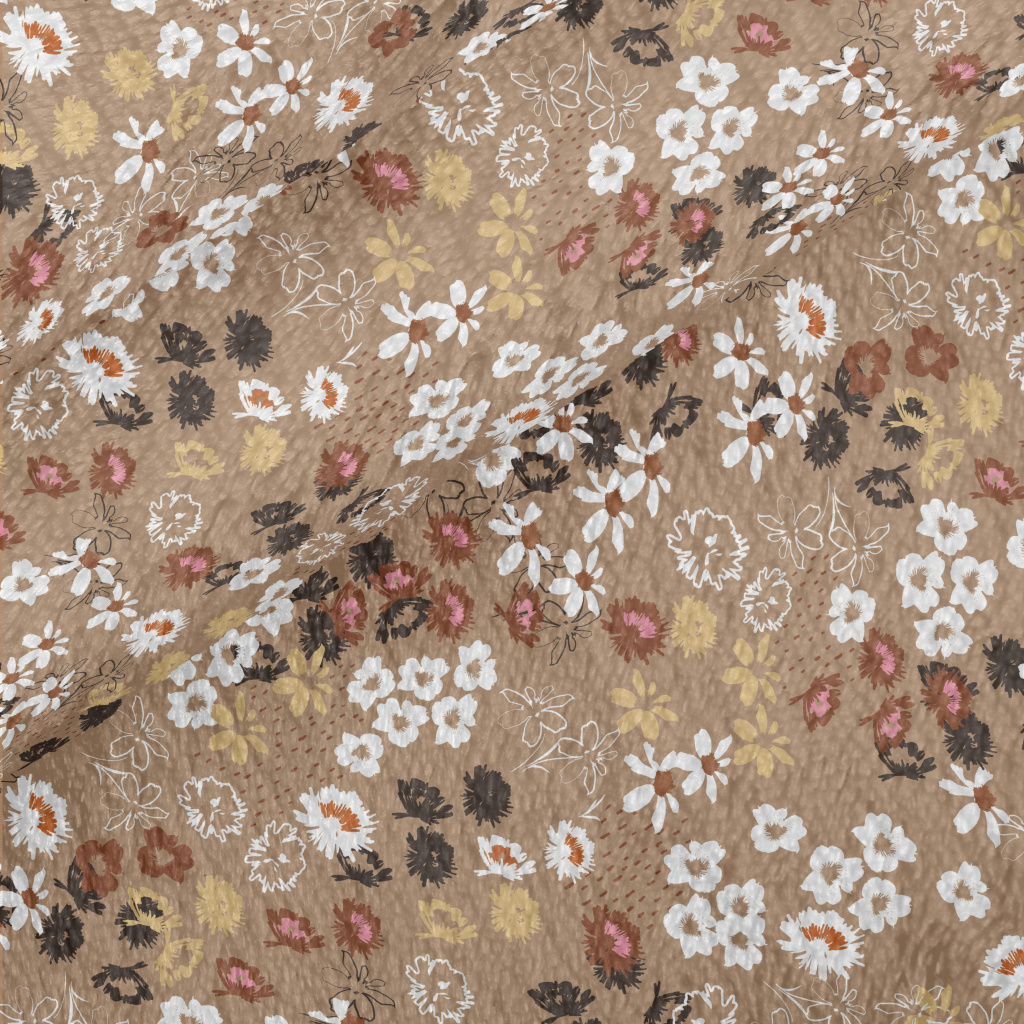 五顏六色的盛開花朵法蘭絨(幅寬150公分)