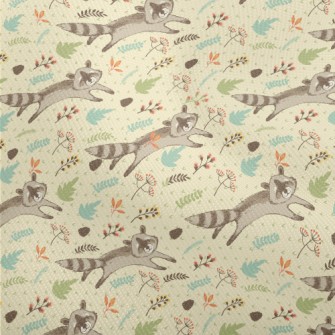 奔跑中的開心浣熊竹節麻(幅寬150公分)