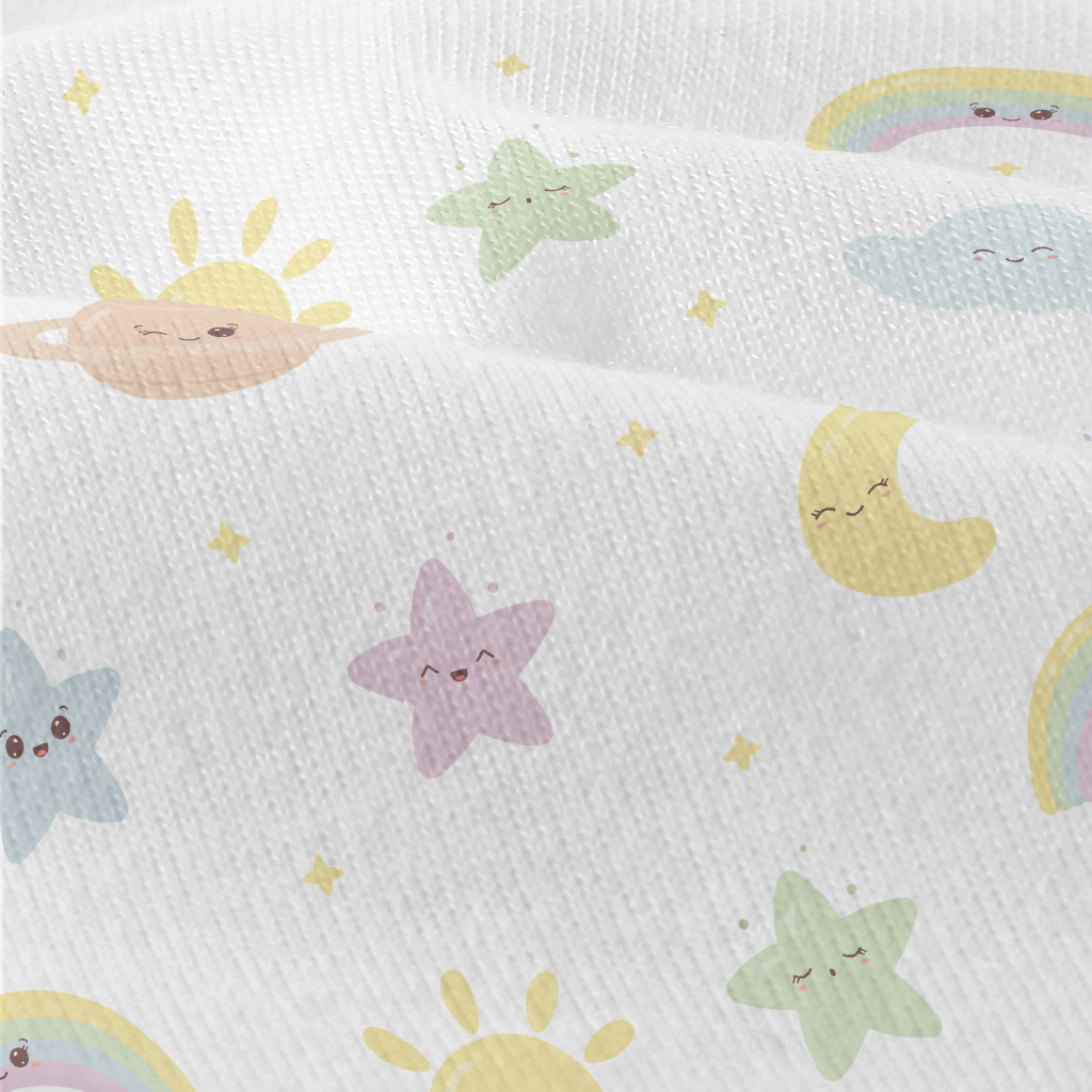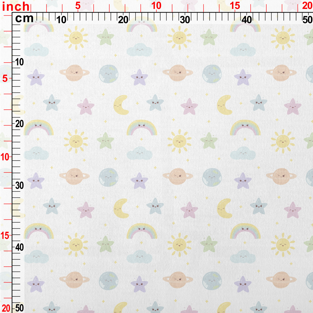 天空行星充滿各式表情仿棉布(幅寬150公分)