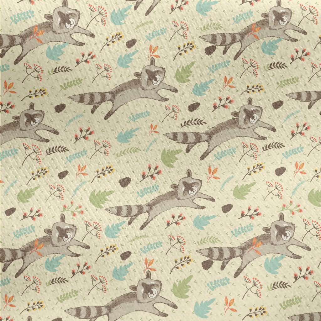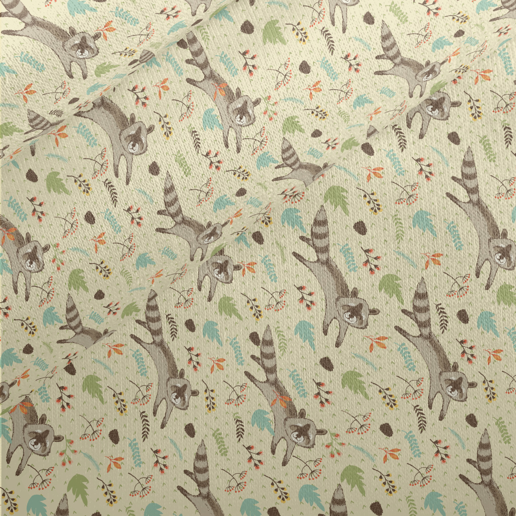 奔跑中的開心浣熊刷毛布(幅寬150公分)