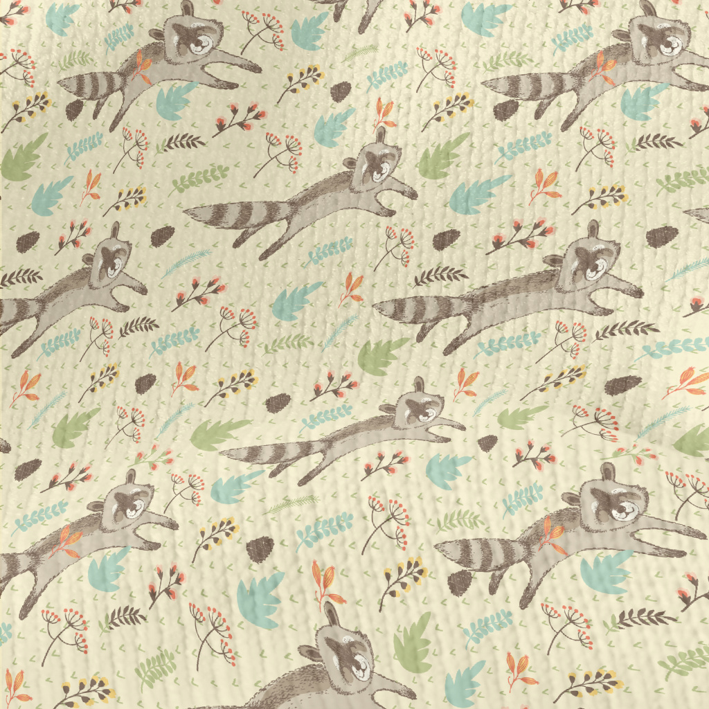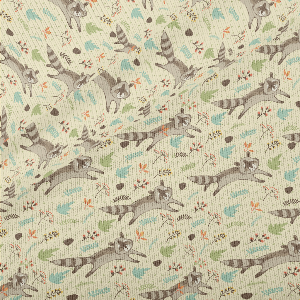 奔跑中的開心浣熊仿毛衣布(幅寬150公分)