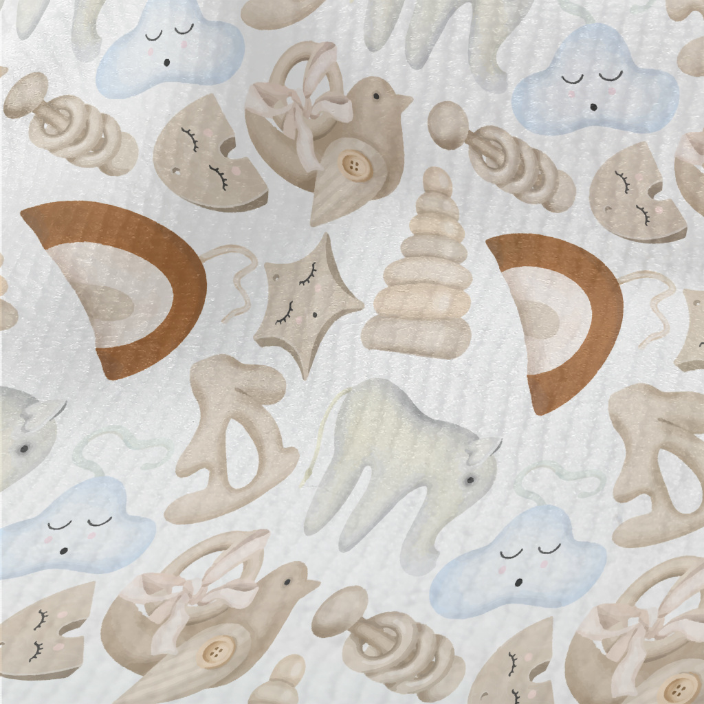 可愛的兒童木製玩具毛巾布(幅寬160公分)