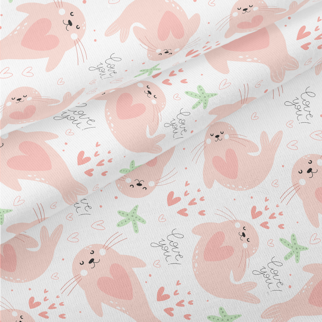 嬌俏可愛的粉色海豹仿棉布(幅寬150公分)