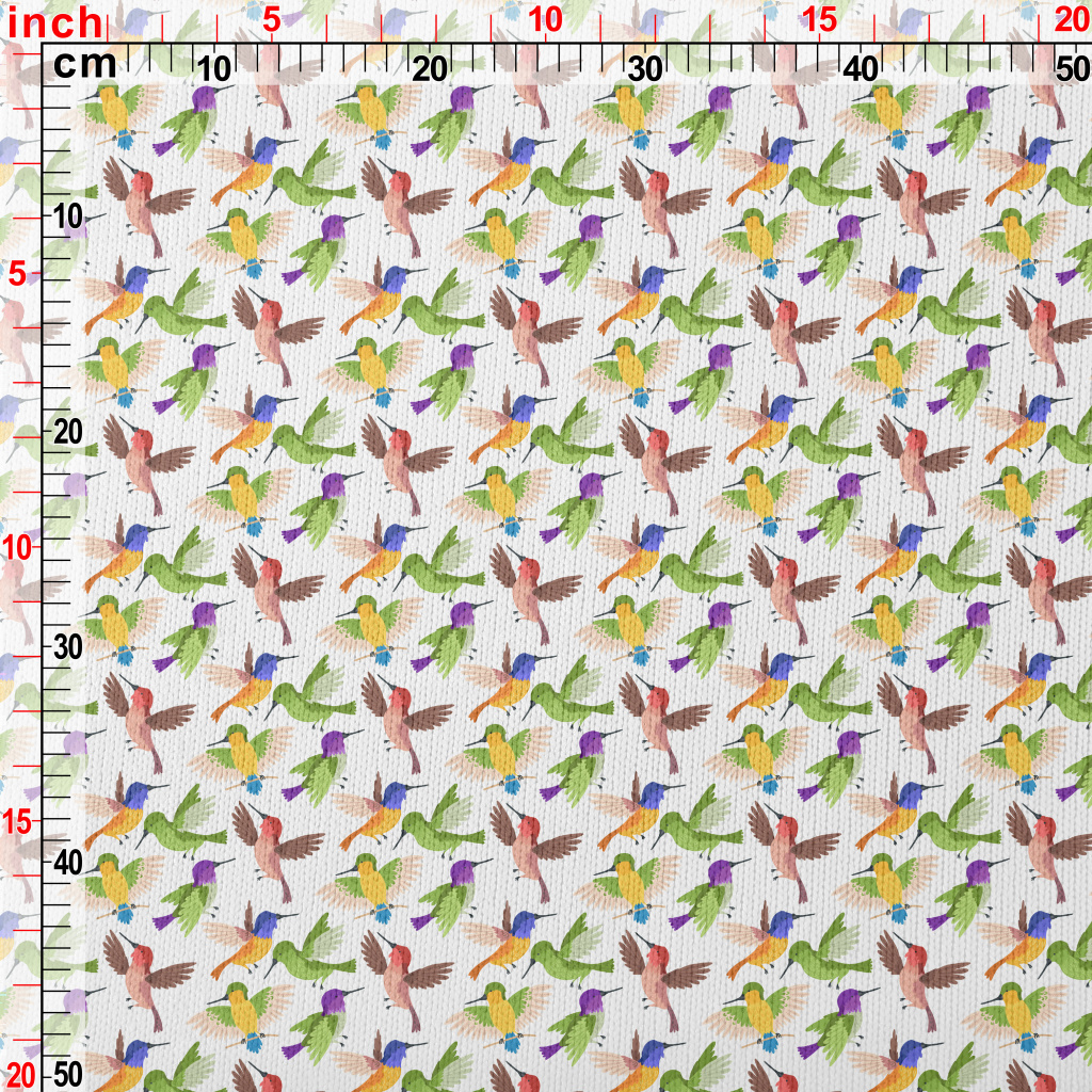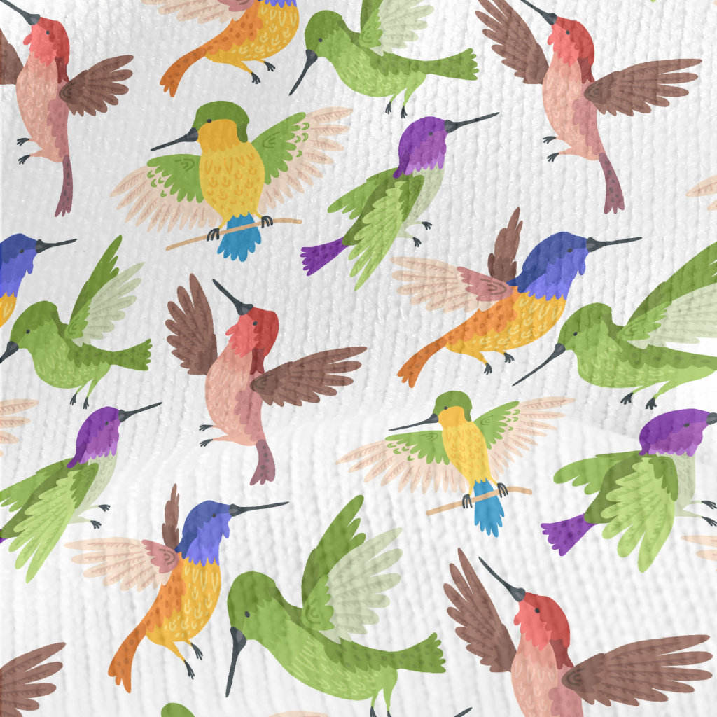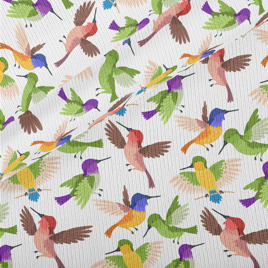 展翅飛行的彩色蜂鳥仿毛衣布(幅寬150公分)