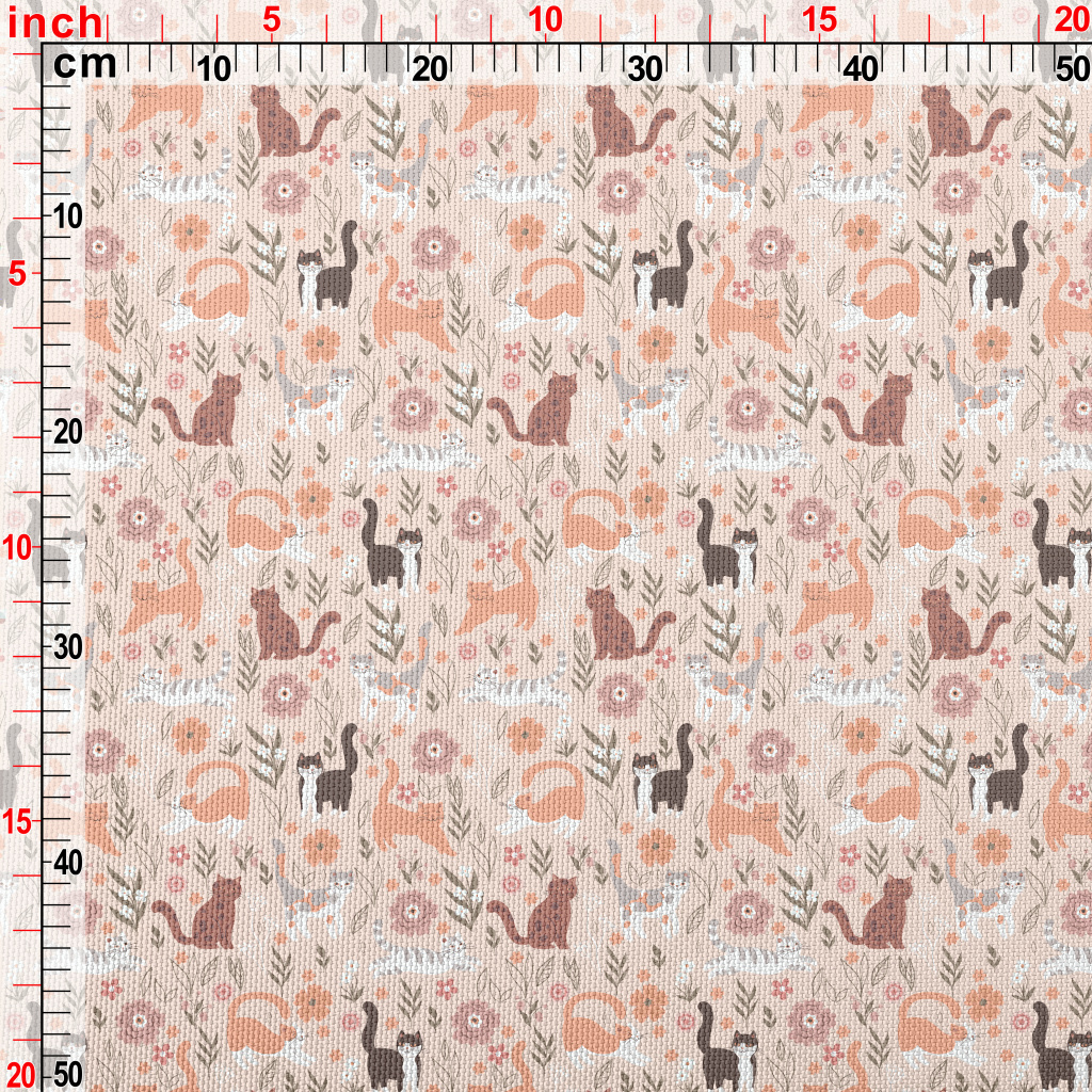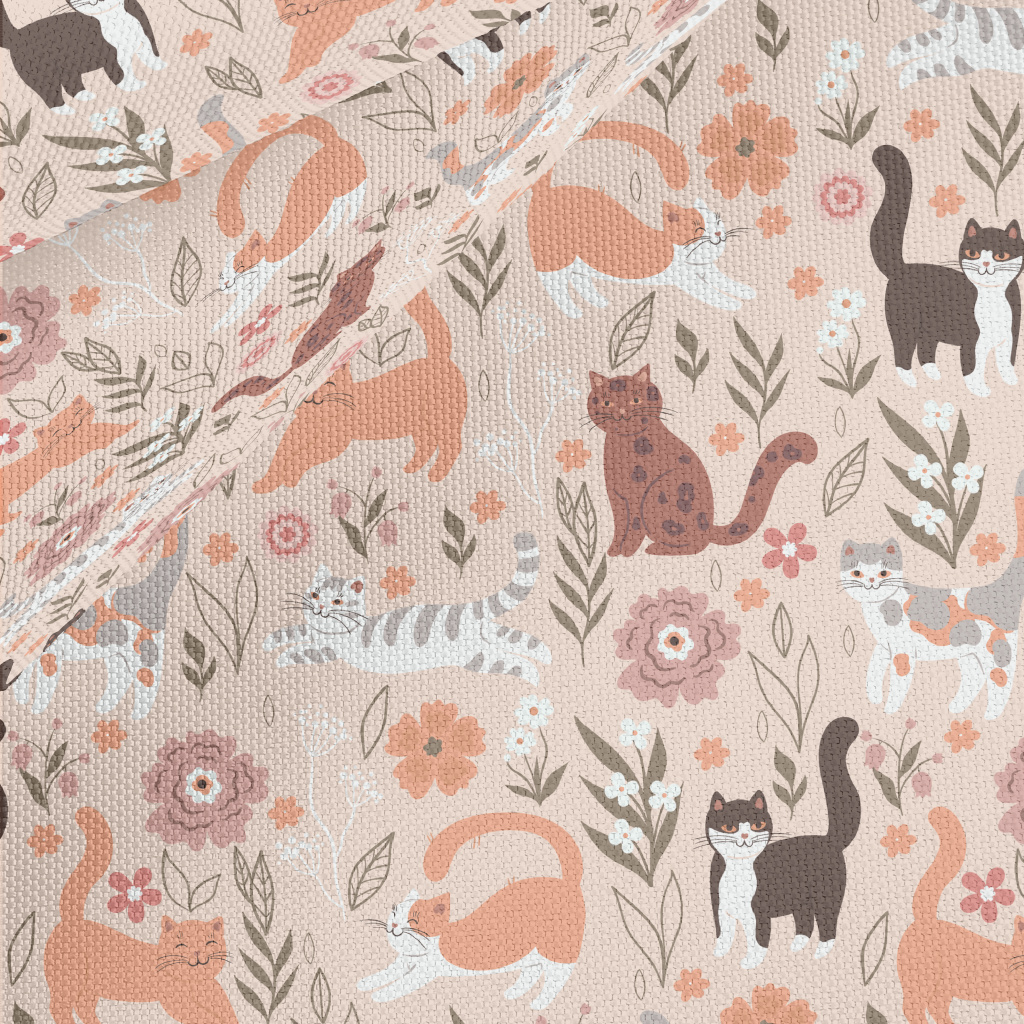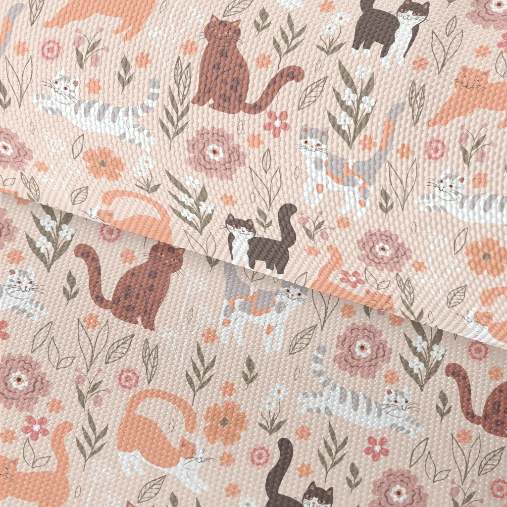 惹人喜愛的貓和鮮花牛津布(幅寬150公分)