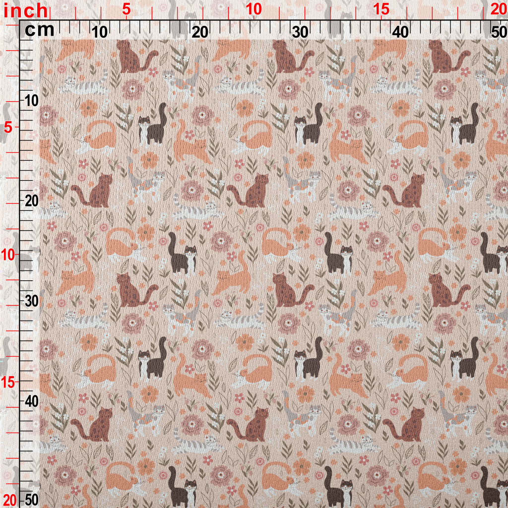 惹人喜愛的貓和鮮花鳥眼布(幅寬160公分)