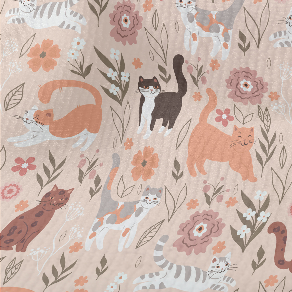 惹人喜愛的貓和鮮花毛巾布(幅寬160公分)