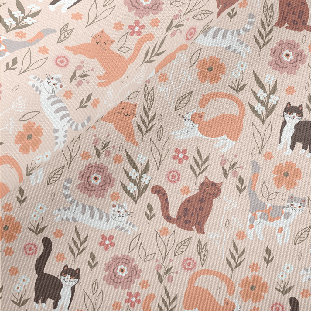 惹人喜愛的貓和鮮花斜紋布(幅寬150公分)