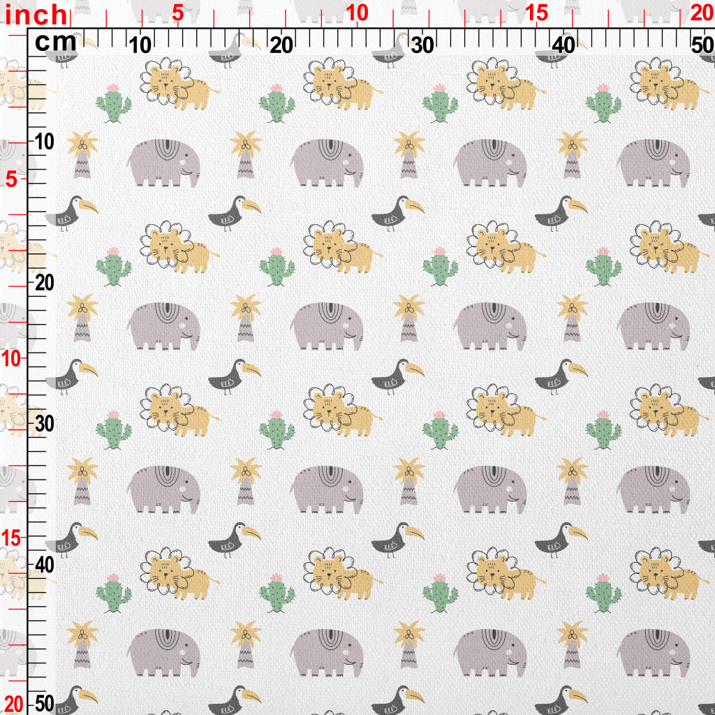 非洲鳥類和大型動物竹節麻(幅寬150公分)